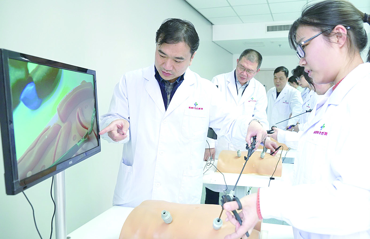 “比如腹腔镜手术,学员必须先在临床技能培训中心完成整个腔镜训练培训课程的学习,合格后才能上手术台。这不仅进一步促进了临床医疗的规范,更保障了患者的安全。”黄曼辉介绍。而除此之外,临床技能培训中心还有复苏安妮、气管插管、综合穿刺等基础模型,并拥有孕产妇和新生儿模拟器、高级智能腹腔镜手术训练分析系统、基于增强现实与融合投影的3D虚拟情景化临床综合实训平台、AR显示系统、临床思维训练系统、智慧教室等,让临床场景在临床技能培训中心再现,可以满足不同层次的模拟教学要求与培训考核任务。