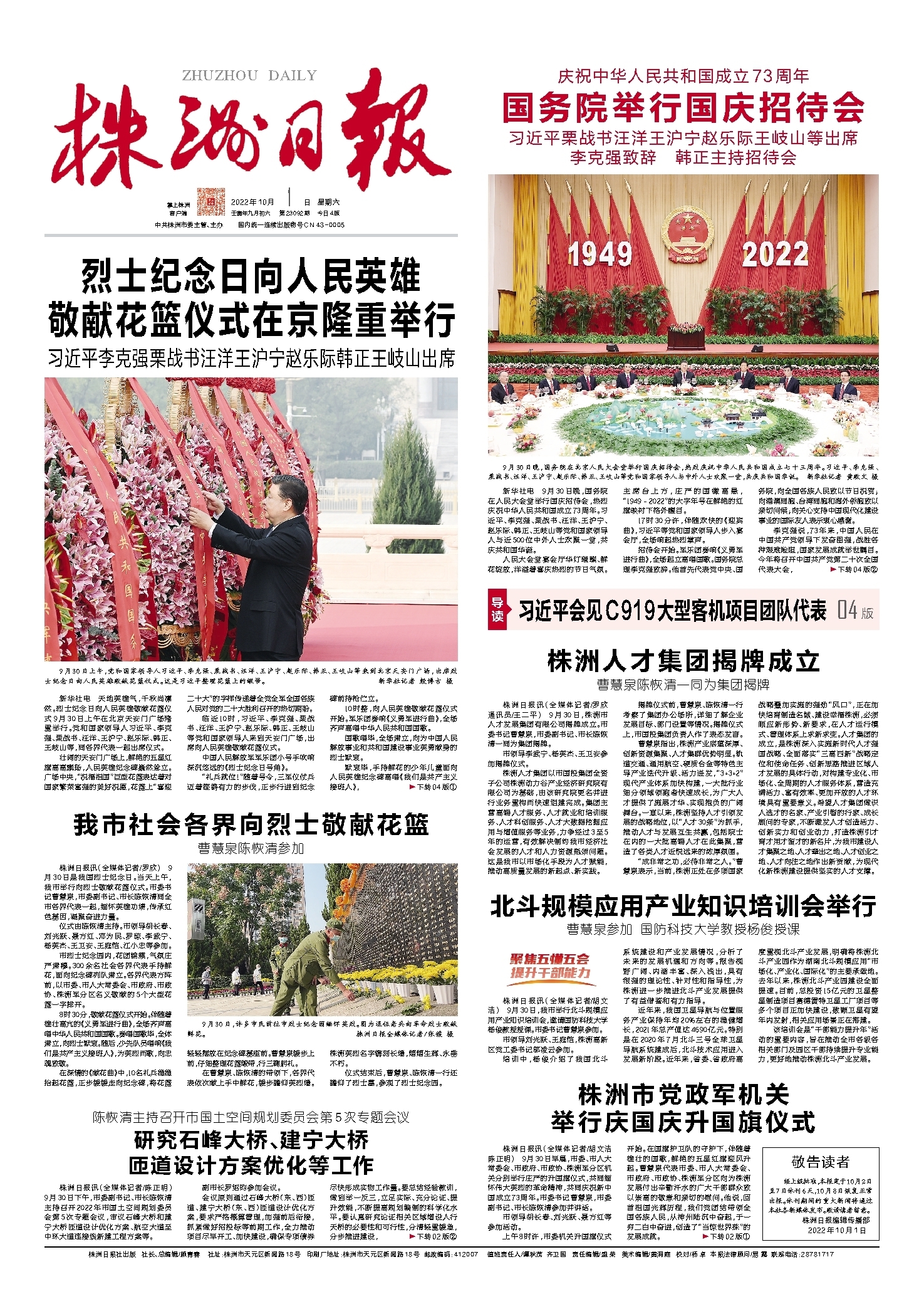 新华社电 9月30日晚,国务院在人民大会堂举行国庆招待会,热烈庆祝中华人民共和国成立73周年。习近平、李克强、栗战书、汪洋、王沪宁、赵乐际、韩正、王岐山等党和国家领导人与近500位中外人士欢聚一堂,共庆共和国华诞。