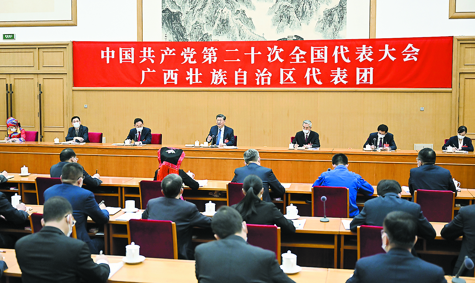 10月17日,习近平同志参加党的二十大广西代表团讨论。 新华社记者/谢环驰 摄