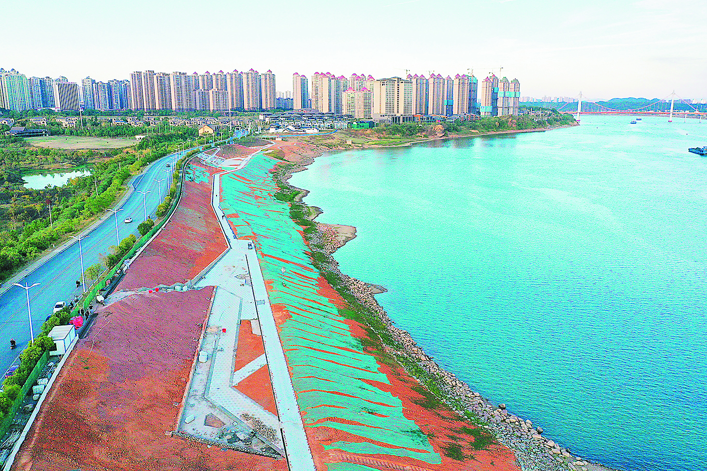湘江河西段(珠江南路—建宁大桥)岸线综合治理工程建设现场。 谢慧/摄