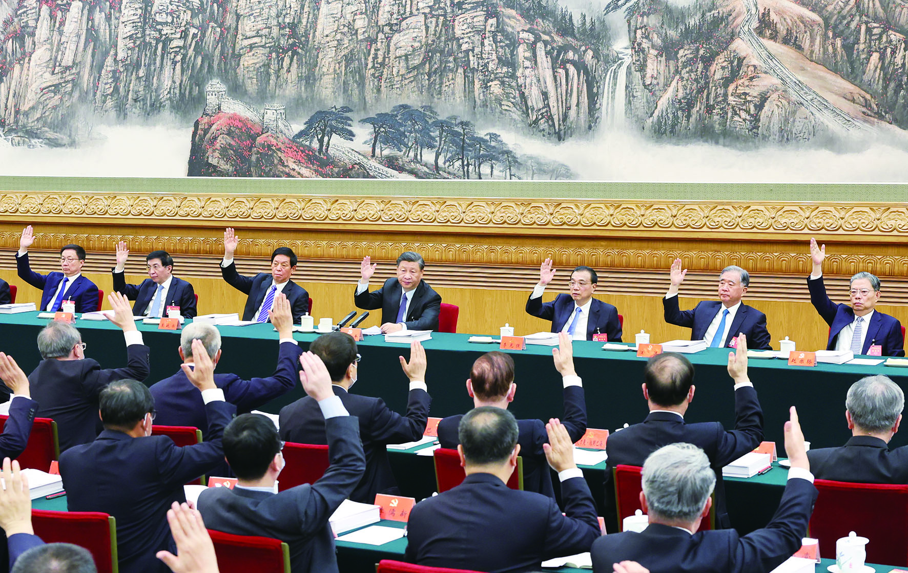 10月21日,中国共产党第二十次全国代表大会主席团在北京人民大会堂举行第三次会议。习近平、李克强、栗战书、汪洋、王沪宁、赵乐际、韩正等出席会议。 新华社记者/姚大伟 摄