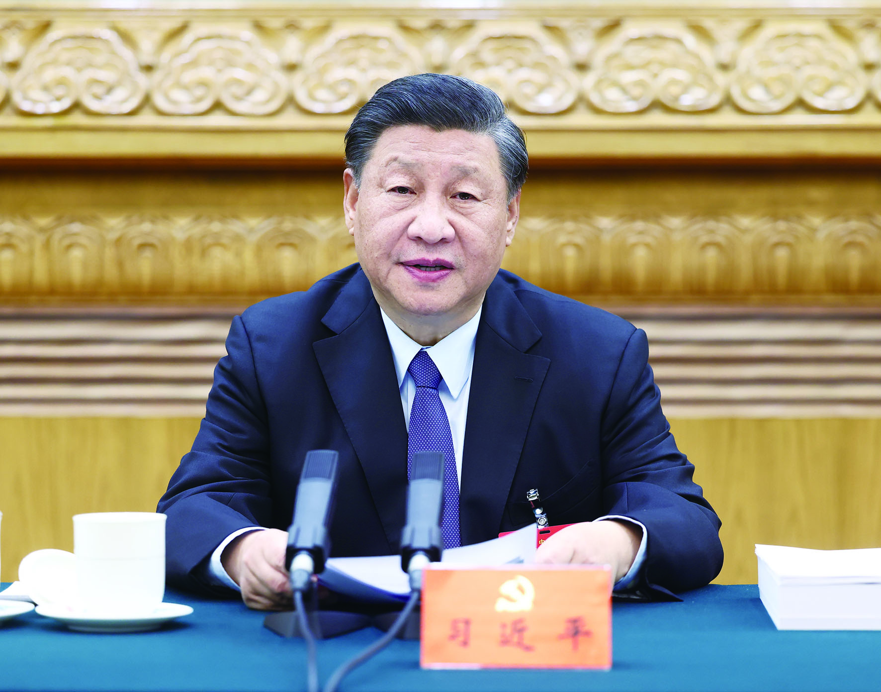 10月21日,中国共产党第二十次全国代表大会主席团在北京人民大会堂举行第三次会议。习近平同志主持会议。 新华社记者/鞠鹏 摄