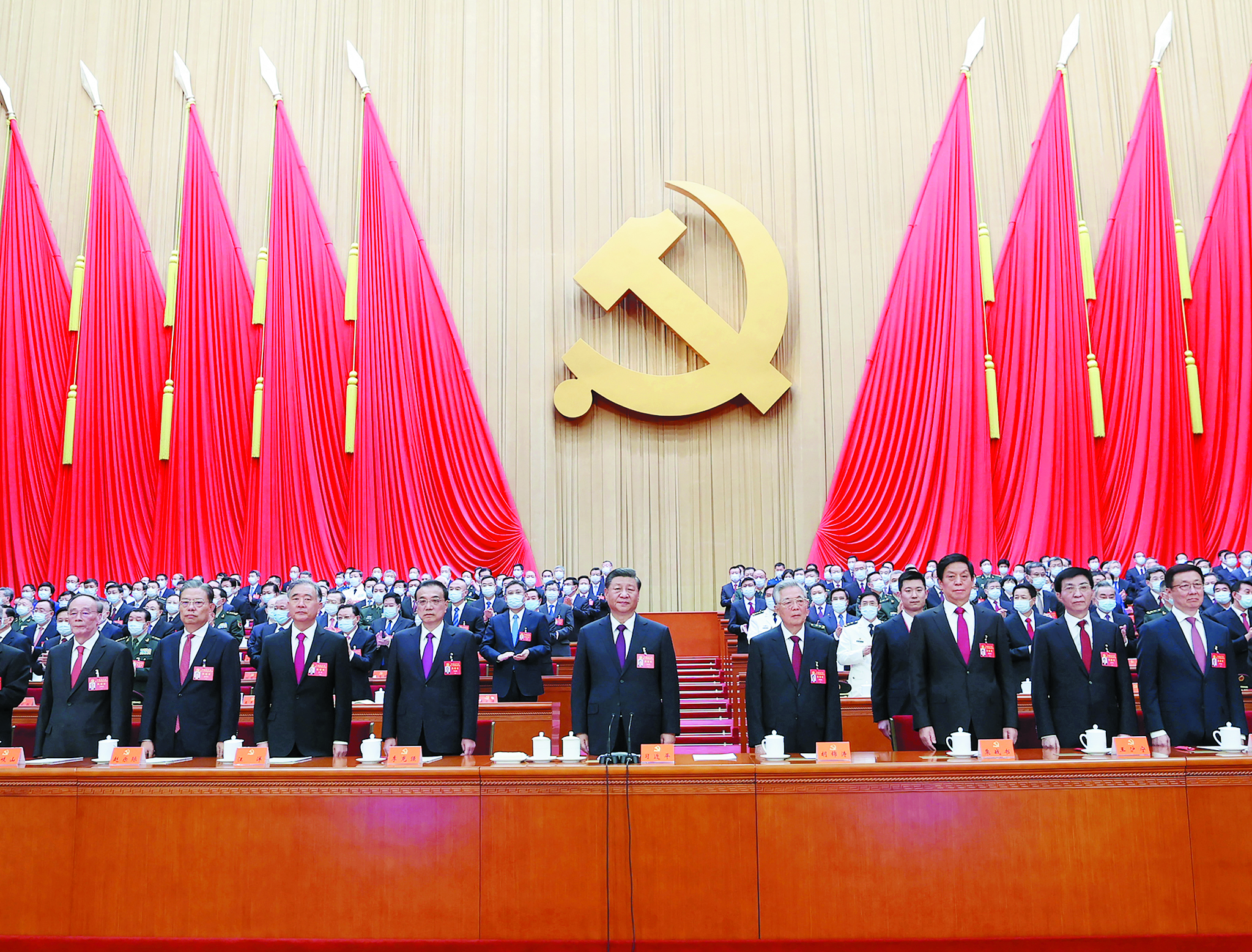 ▲10月22日,中国共产党第二十次全国代表大会在北京人民大会堂胜利闭幕。这是习近平、李克强、栗战书、汪洋、王沪宁、赵乐际、韩正、王岐山、胡锦涛在主席台上。 新华社记者/鞠鹏 摄