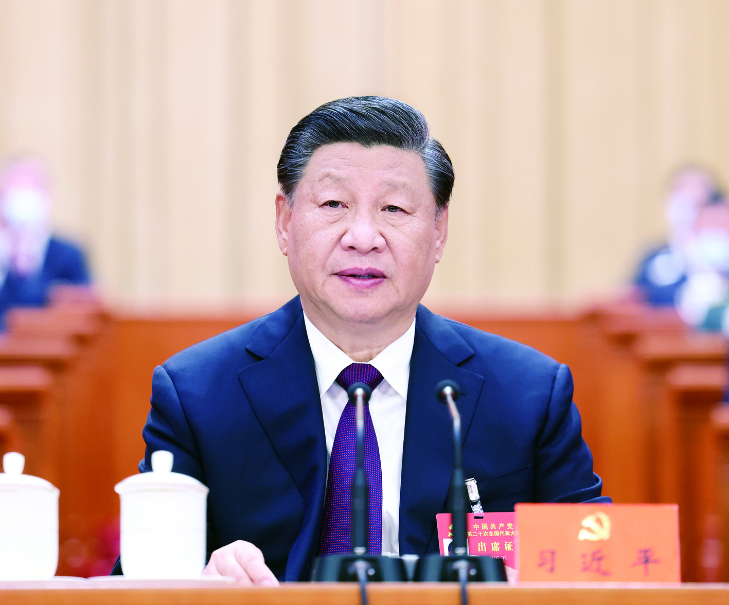 ◀10月22日,中国共产党第二十次全国代表大会在北京人民大会堂胜利闭幕。习近平同志主持大会。 新华社记者/鞠鹏 摄