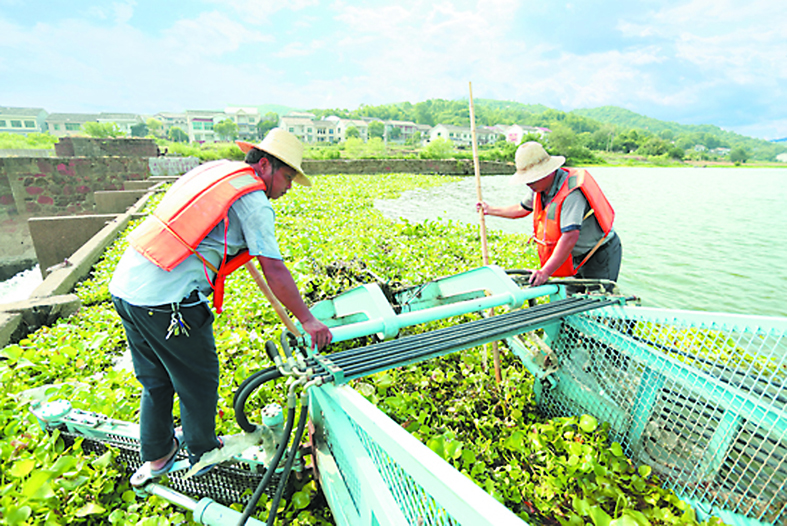 渌水醴陵段打捞水葫芦现场。记者/俞强年摄