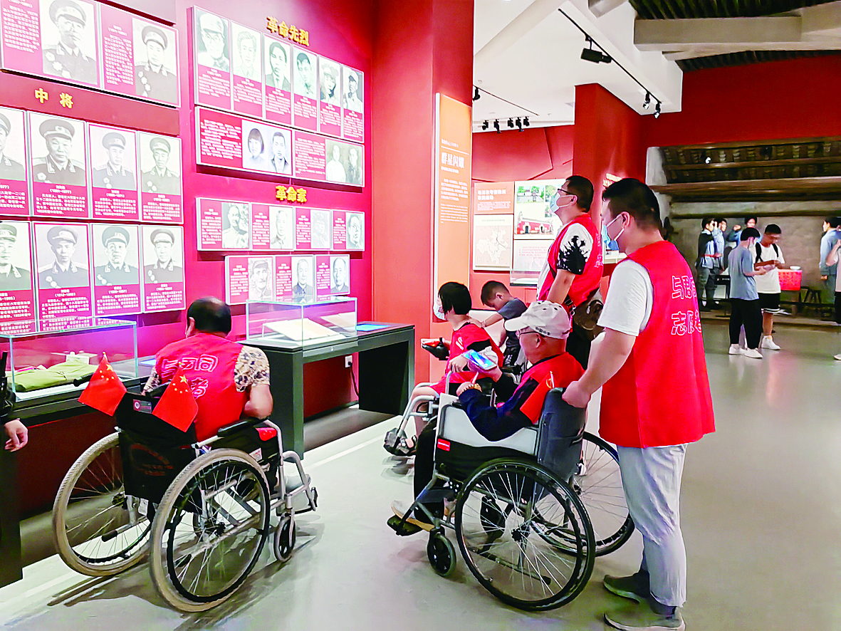 国庆期间,市益民社会工作服务中心组织6位重度残障人士,乘坐轮椅来到市博物馆大厅,认真观看先烈们的事迹介绍,深切缅怀先烈们的风骨气节。残障人士参观后纷纷表示,我们今天的安宁、幸福生活,是无数革命先烈用鲜血和生命创造的。缅怀他们的最好方式,就是好好珍惜当下,用一颗感恩的心踊跃参与幸福株洲建设。