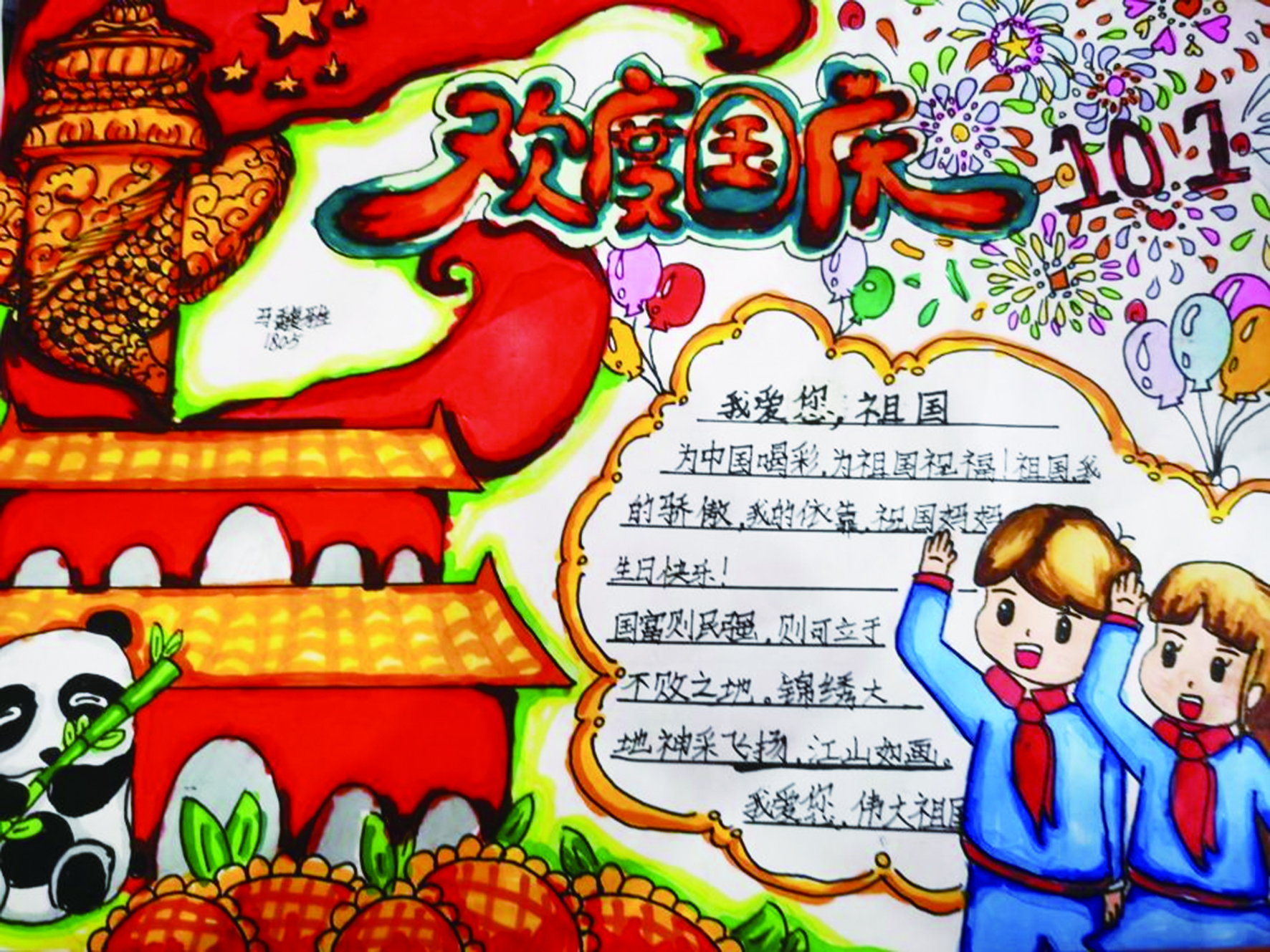 荷塘区红旗路小学学生自制欢度国庆贺卡。 记者/谭筱 摄