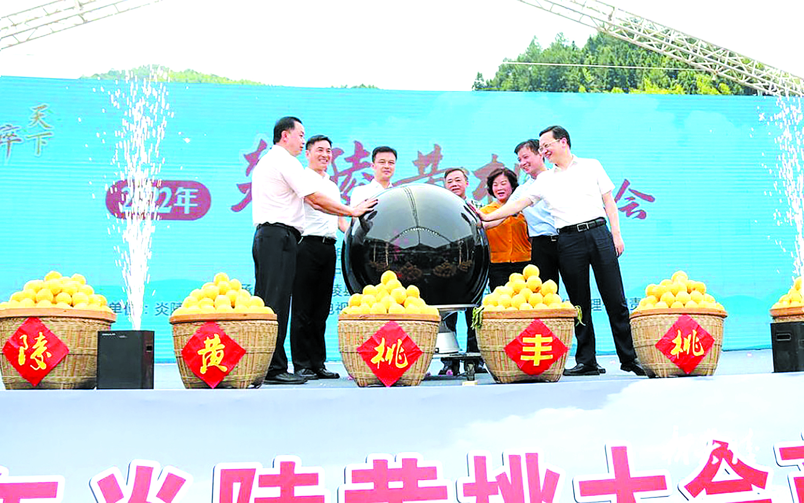▲炎陵黄桃成了当地群众脱贫致富“金果”,图为2022年炎陵黄桃大会启动仪式。 市乡村振兴局供图
