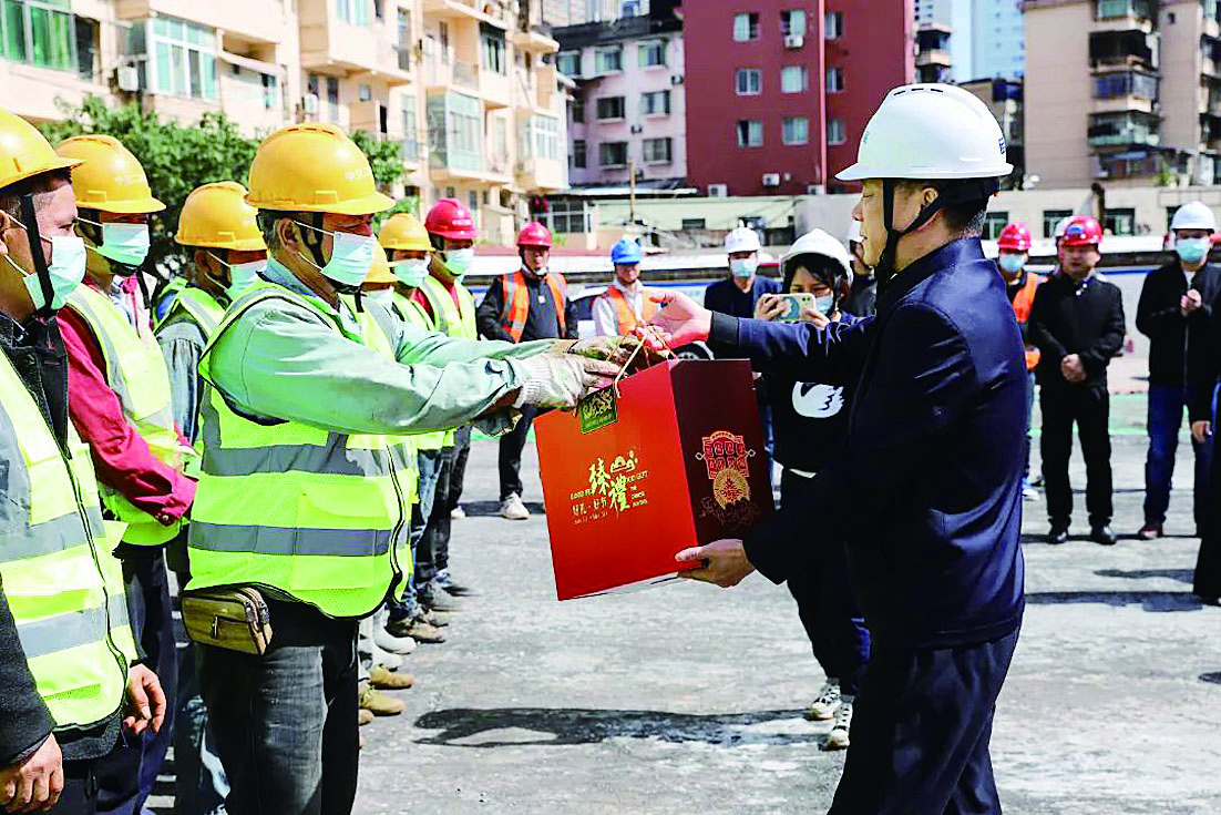 市总工会慰问组将慰问物资送到农民工手中。 通讯员 供图