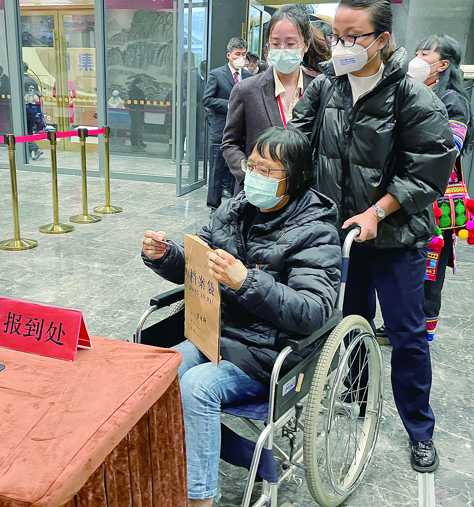 来自云南省的党的二十大代表抵达北京。这是张桂梅代表(前)抵达驻地报到。 新华社发