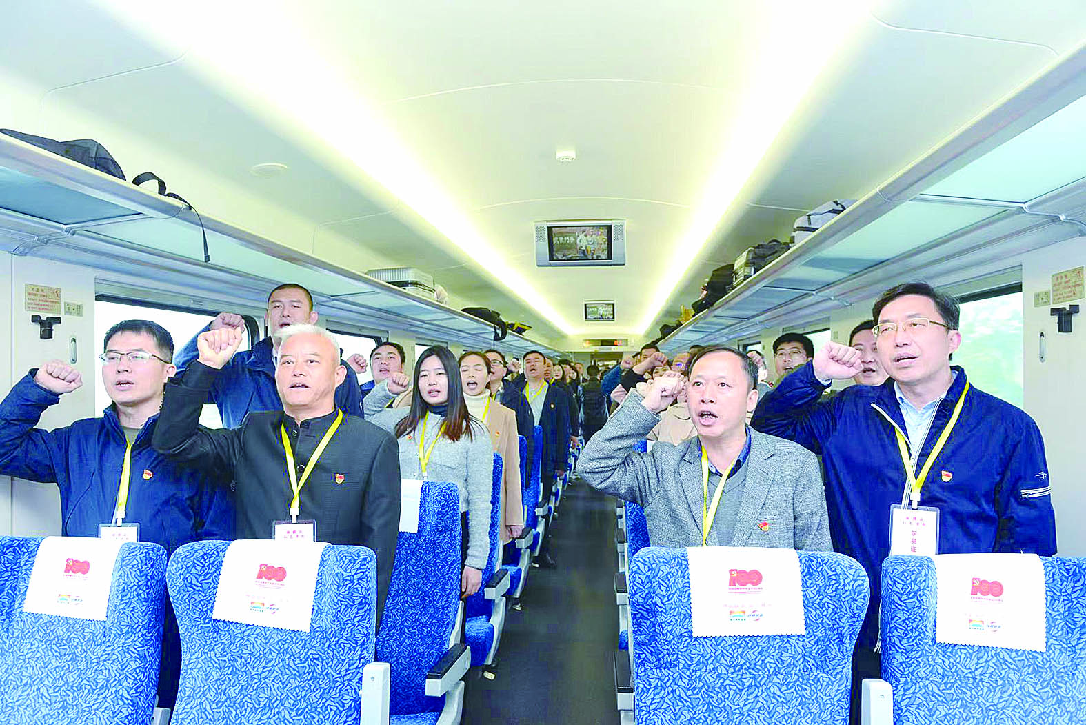 市发展改革委党员登上湘赣边“红色专列”,开展党性教育活动。 通讯员供图