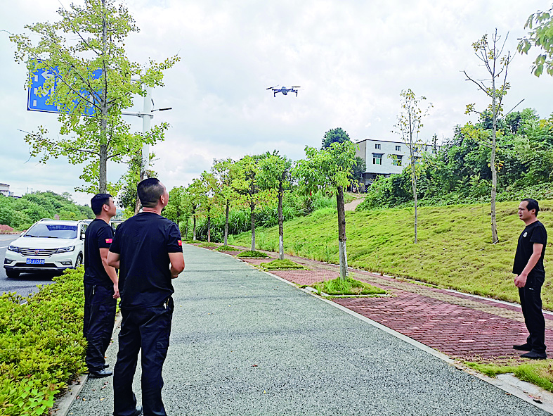 治违队员使用无人机巡查小区违建。
