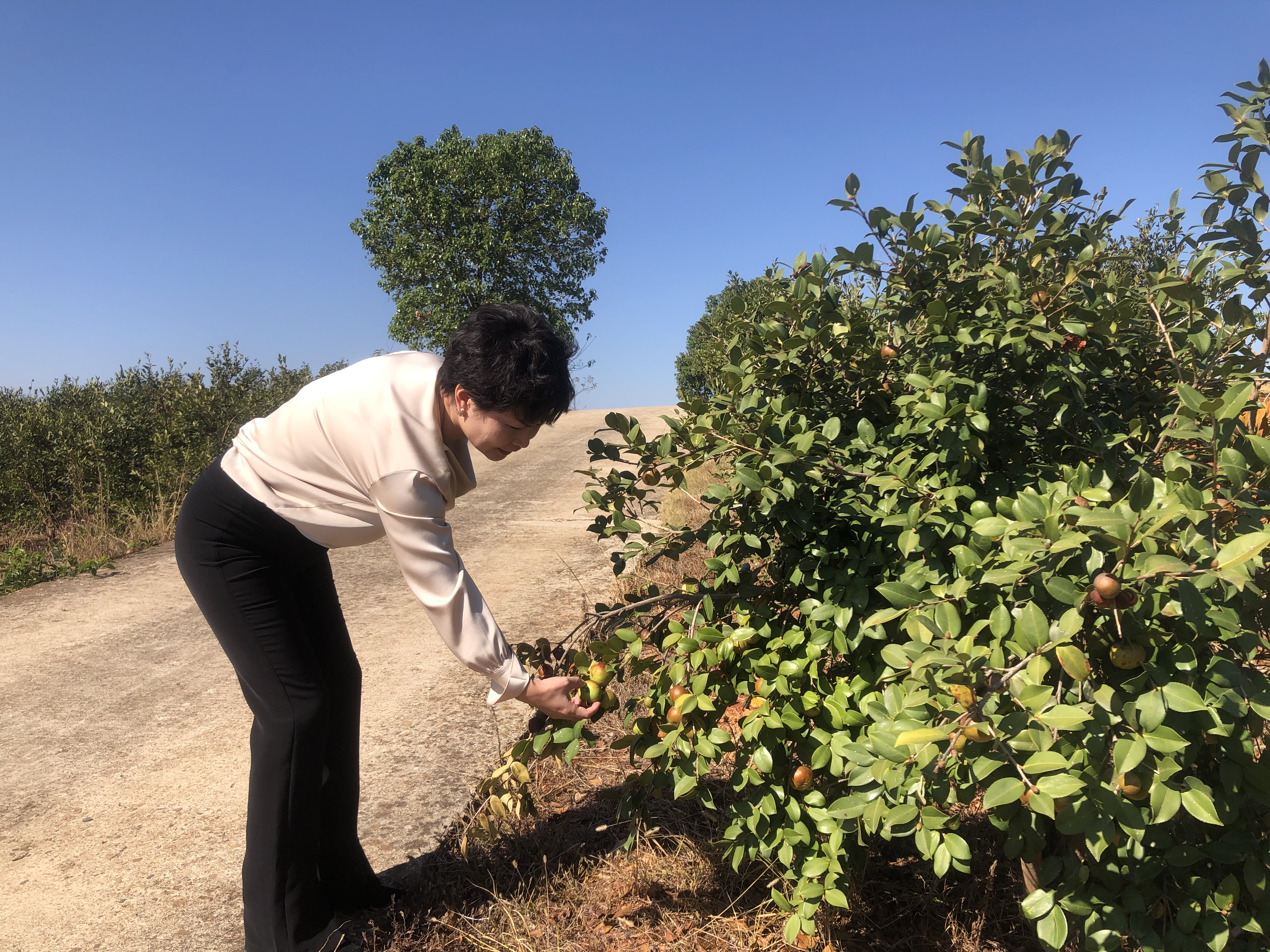 湘天华油茶科技股份有限公司(以下简称湘天华)董事长张文新行走在油茶林中。巡山,是她和公司员工近期的重点工作。攸县6个油茶基地、5000亩油茶林,21个山头,正进入采收前的关键期。“这段时间白天气温高,昼夜温差大,油茶果正加速油脂转化,马上就进入采收期。”张文新说。