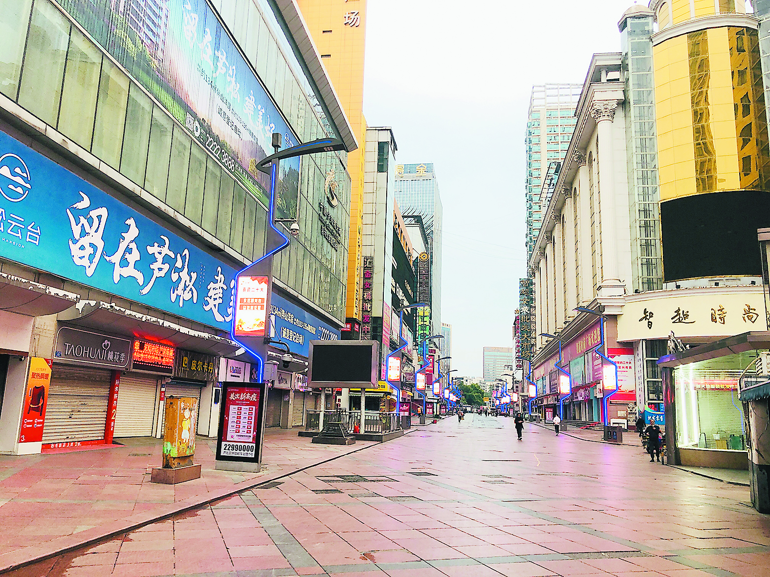 芦淞服饰市场群按照疫情防控要求落实静默管理措施,往日热闹的市场群安静了下来。图为11月3日清晨的芦淞市场群。