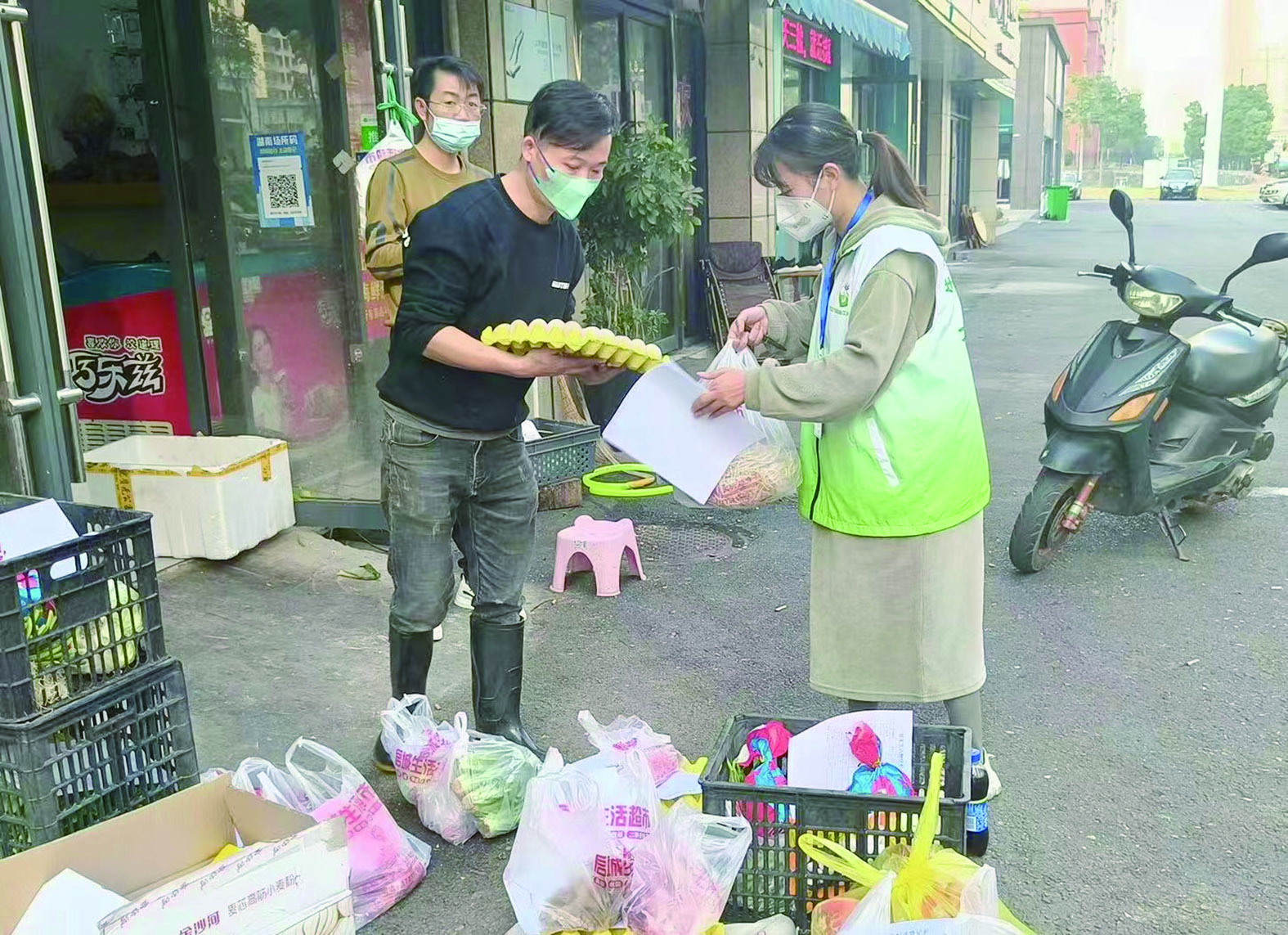 罗希(右)正在按居民需求前往安心商家购买蔬菜。 通讯员 供图