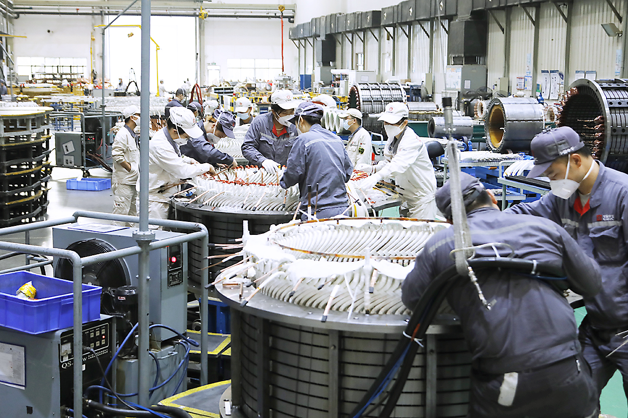 中车株洲电机公司驻厂员工正在紧张生产中。 企业供图