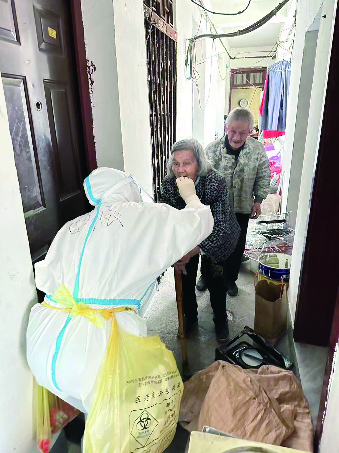 市妇幼保健院核酸采样队员上门进行核酸采样。 通讯员/周艳姿 供图