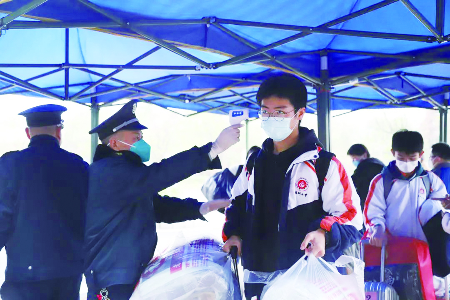 当日,株洲市北附高级中学高三年级341名学生自早上7时开始错峰返校,学生们经过测温通道排队,有序进入学校。校领导、值班教师、志愿者和保安早早守候在校门口,迎接着同学们的到来。各班班主任老师精心准备了以疫情防控和心理健康为主题的复学第一课,帮助同学们调整好学习状态,以更饱满的精神投入复课后的学习生活。