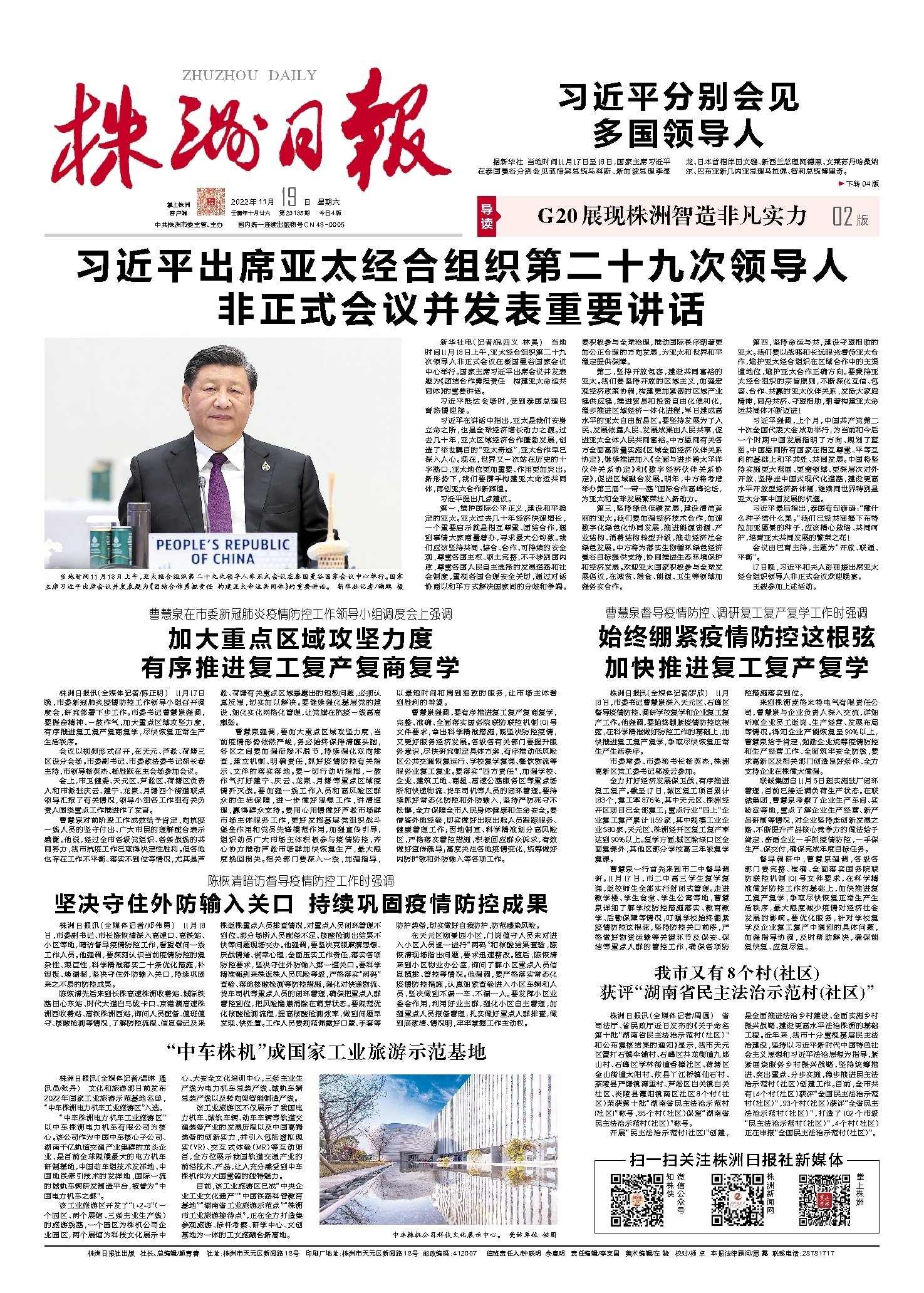 习近平指出,面对世纪疫情和百年变局,中新关系发展势头良好,不仅助力两国抗疫和经济复苏,而且为地区稳定和繁荣注入了正能量。中新关系具有前瞻性、战略性和示范性。中共二十大对中国全面建设社会主义现代化国家、全面推进中国式现代化作出了战略部署。中方愿同新方携手推动两国与时俱进的全方位合作伙伴关系不断取得新进展。