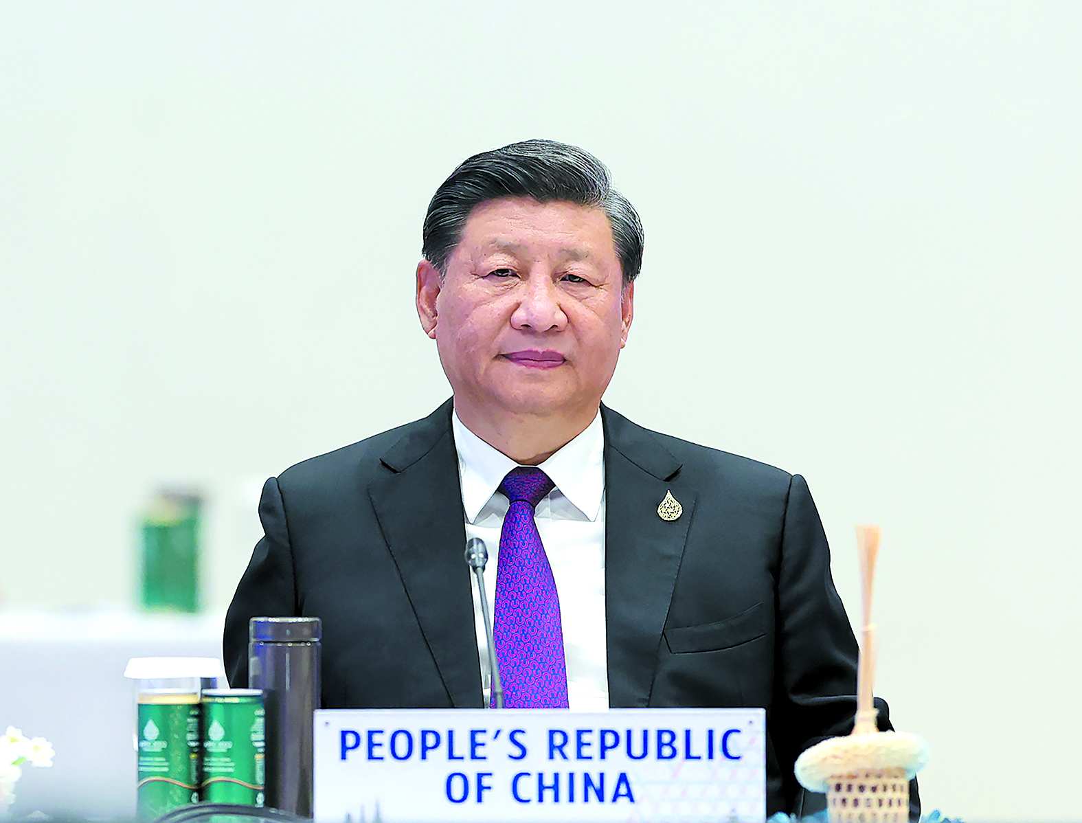 当地时间11月18日上午,亚太经合组织第二十九次领导人非正式会议在泰国曼谷国家会议中心举行。国家主席习近平出席会议并发表题为《团结合作勇担责任 构建亚太命运共同体》的重要讲话。 新华社记者/鞠鹏 摄