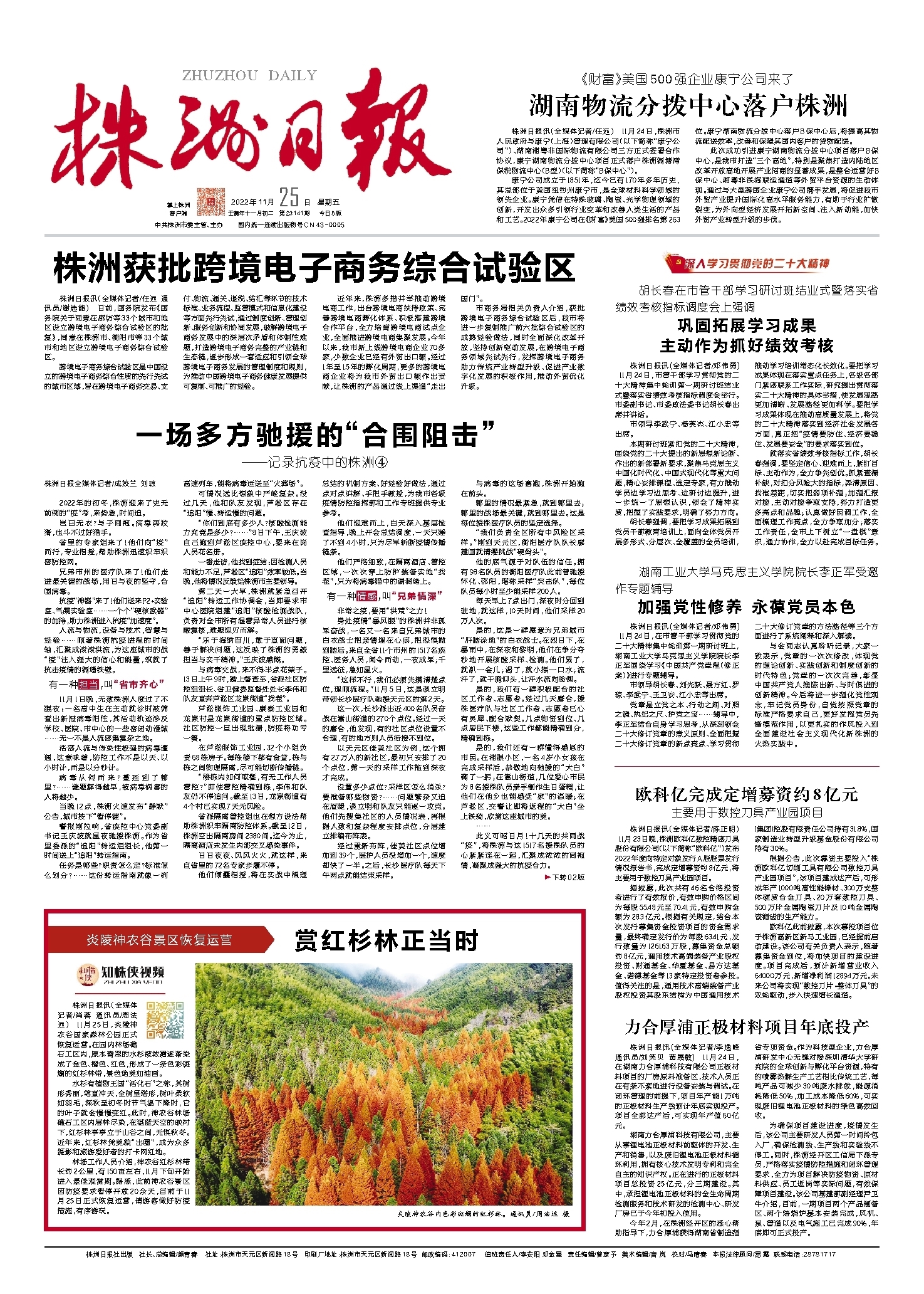 株洲日报讯(全媒体记者/任远) 11月24日,株洲市人民政府与康宁(上海)管理有限公司(以下简称“康宁公司”)、湖南湘粤非国际物流有限公司三方正式签署合作协议,康宁湖南物流分拨中心项目正式落户株洲铜塘湾保税物流中心(B型)(以下简称“B保中心”)。
