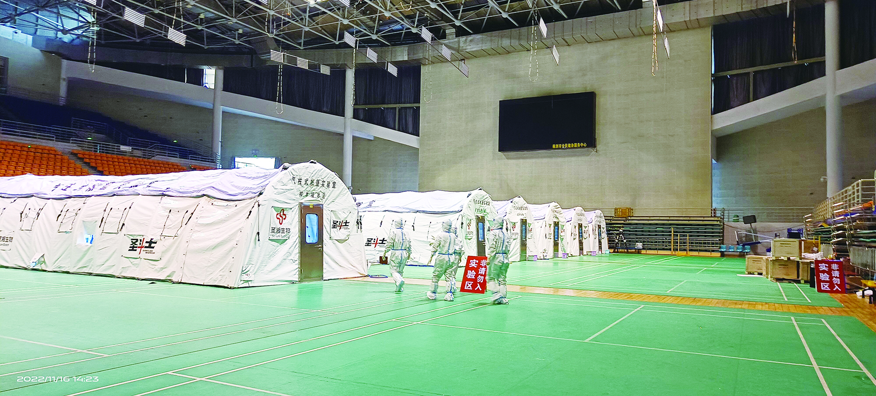 体育中心核酸检测基地仅用了30个小时完成建设,是全市首个气膜核酸检测基地,于11月9日开始试运行。