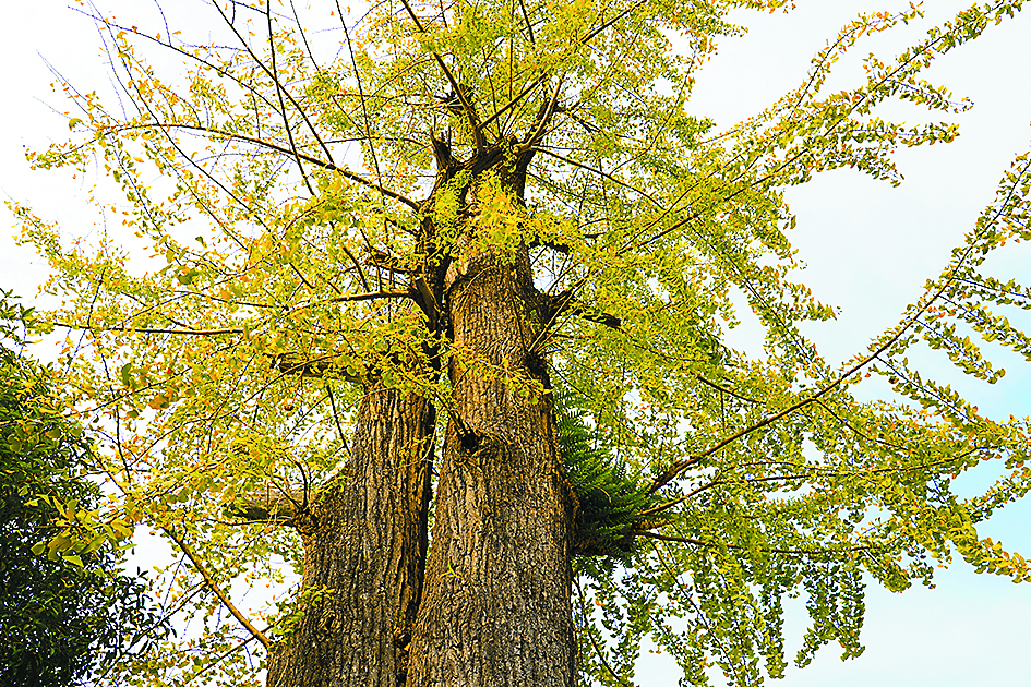 在炎帝陵景区午门广场南向,有一棵雌雄同根、树龄达1400多年的古银杏树。每年10月末到11月上旬,迎来该树的最佳观赏期,只见它枝干相交,比肩而立,雌雄双株依偎生长,在冬日的暖阳里满树金黄,如同披上一身“黄金甲”。
