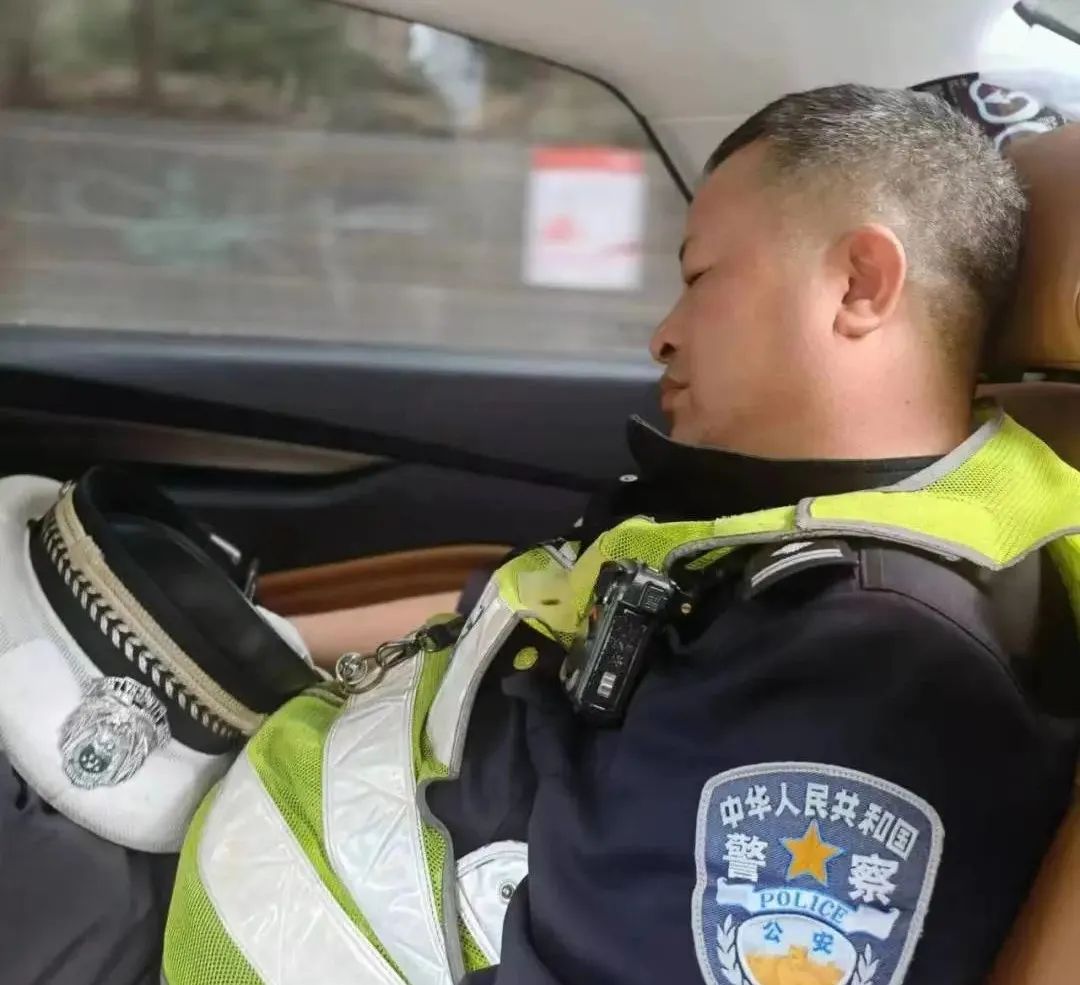 通宵达旦坚守岗位,累了只能窝在车中睡觉。 通讯员供图
