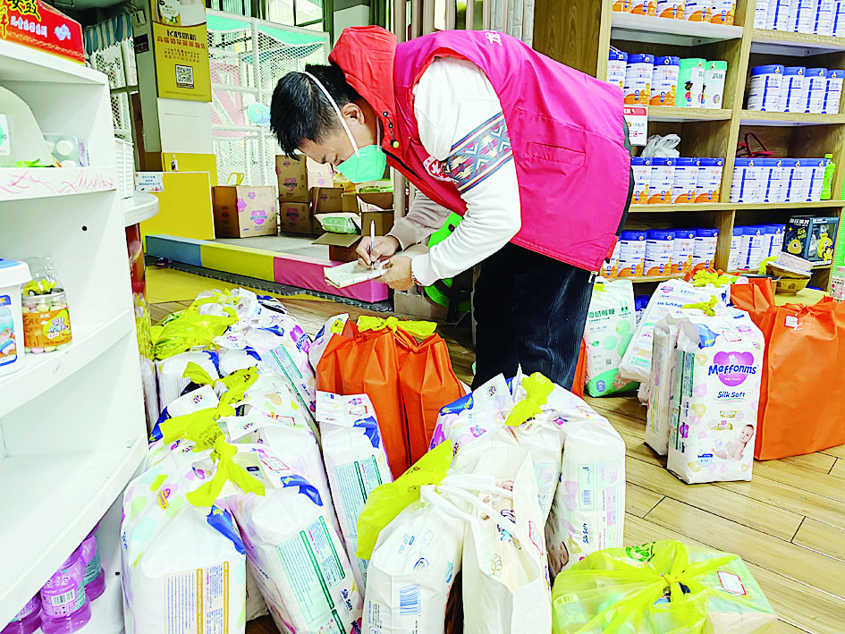 刘翊在清理居民的药品、奶粉等需求,以便规划最合适的路径,将东西尽快送达。 记者/杨凌凌 摄