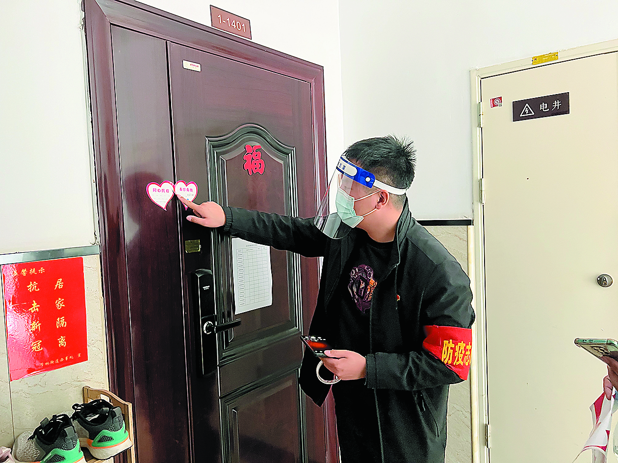 机关干部上门为居家隔离人员贴“爱心贴”。