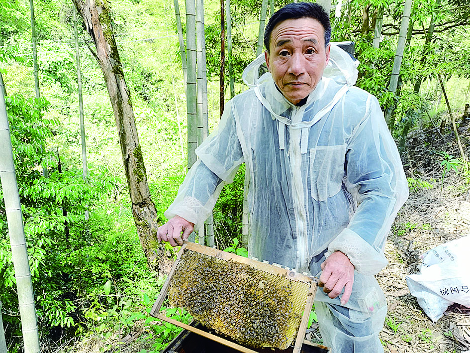 春风村村民收割蜂蜜。 陈洲平 摄