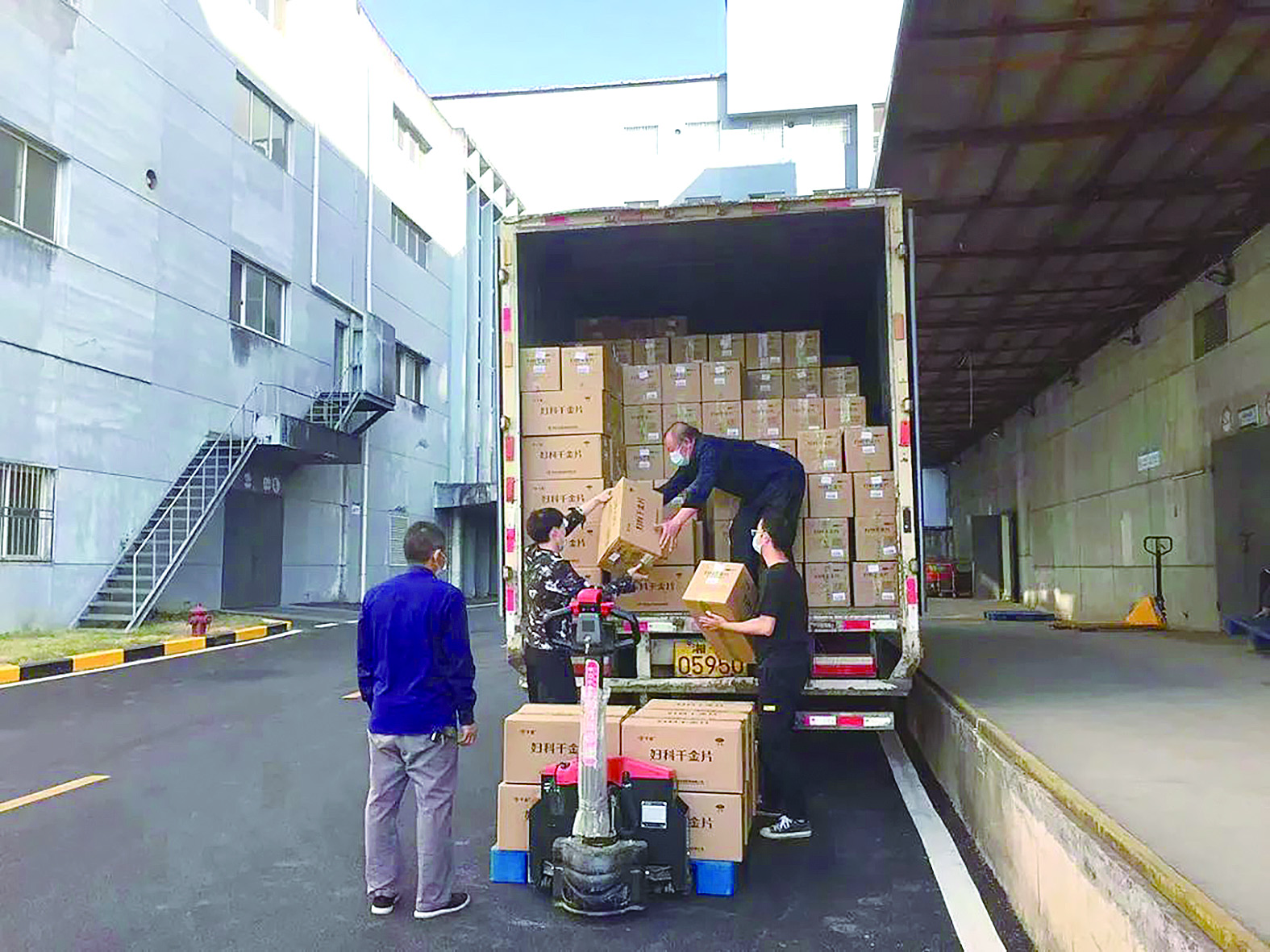 突如其来的疫情,让千金公司的产品停运一周。由于疫情原因仓库管理员及装卸人员不能到岗,为保障市场需求,在解决运输车辆的问题后,公司立即组织河东、河西基地应急发货。综合车间杨志亮、陈显斌、曾宏、朱晓宇、谌军和河东制剂车间唐秋艳、肖娓积极报名,参与河东基地应急发货工作。至11月12日,超预期完成2500多件成品的发货,且无一件一盒差错。
