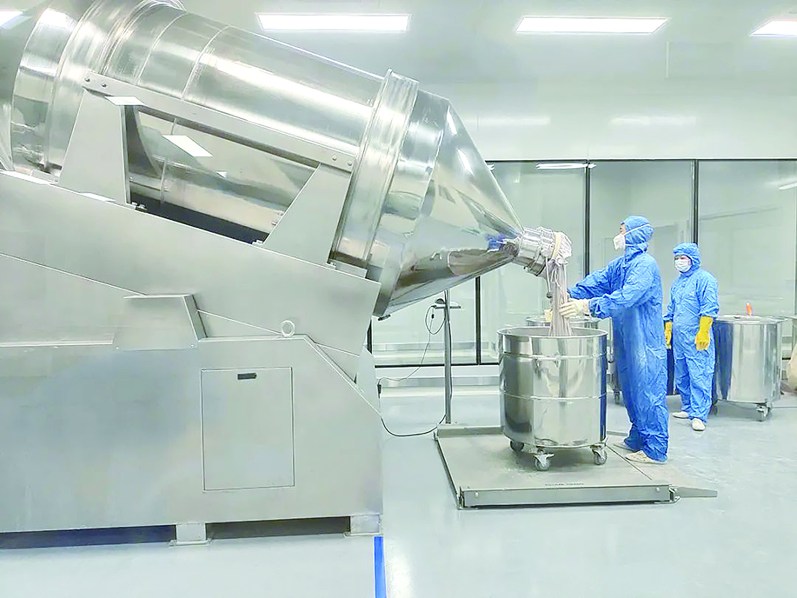 临时代理“排长”的河东制剂车间压片班长奉颖(前方左侧)