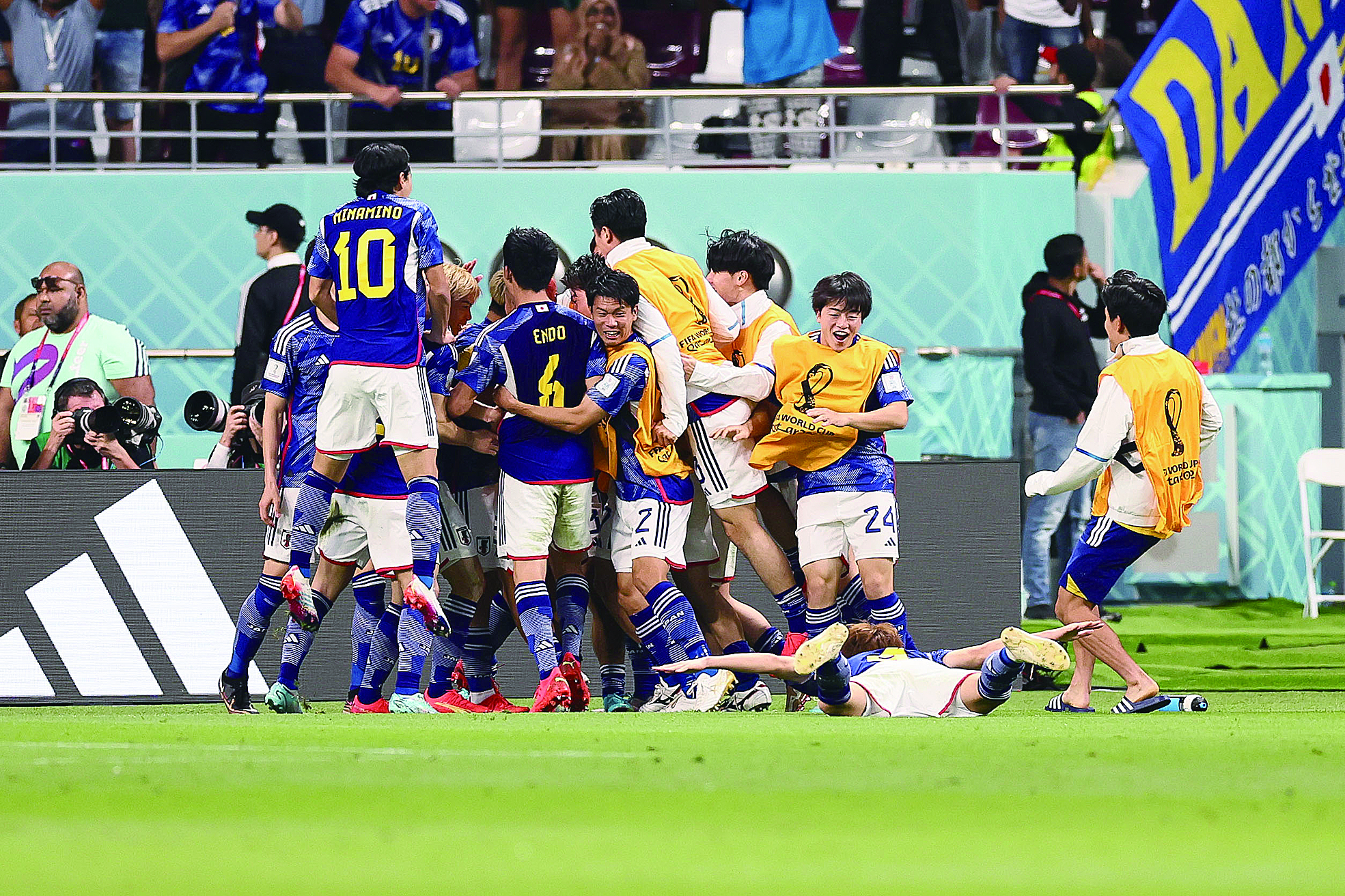 11月23日,日本队球员庆祝进球。 新华社记者 兰红光 摄