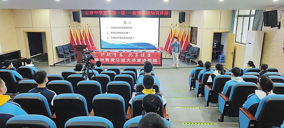 11月23日是云田中学八年级和九年级学生因疫情停课后复学的第一天,石峰区疾控中心携手株洲市天使之家社会工作服务中心(中国青爱工程湖南株洲市基地)在该校举办了传染病防治知识专题讲座,为学生们上好“复学第一课”。