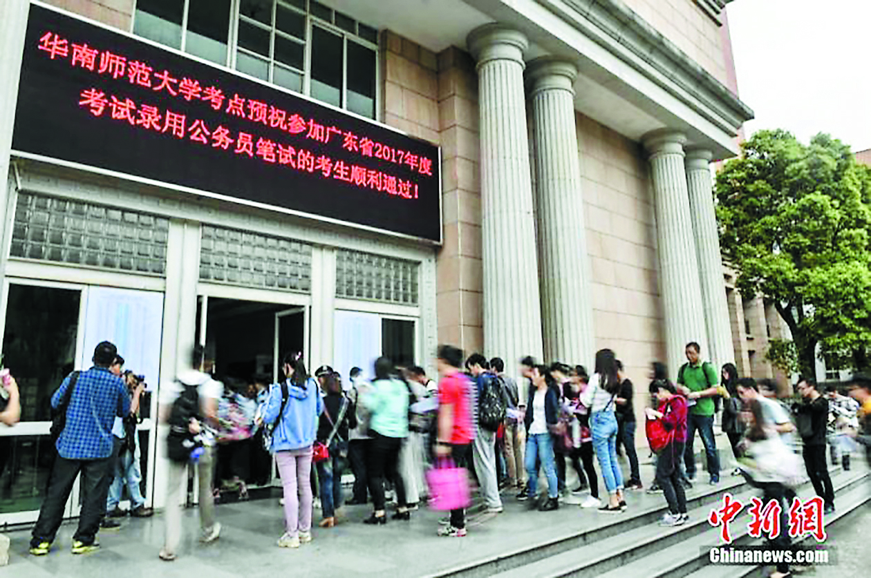 华南师范大学考点,参加公务员考试的考生步入考场。(资料图)据中新社