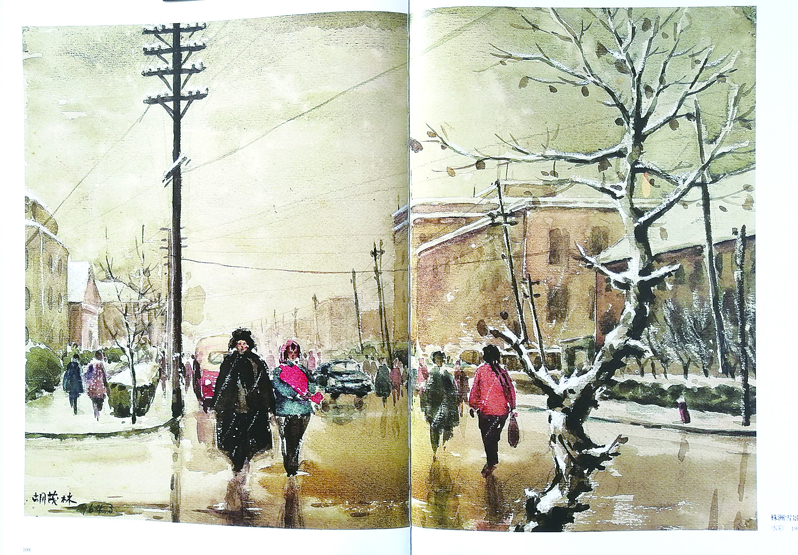 胡茂林水彩画《株洲雪景》