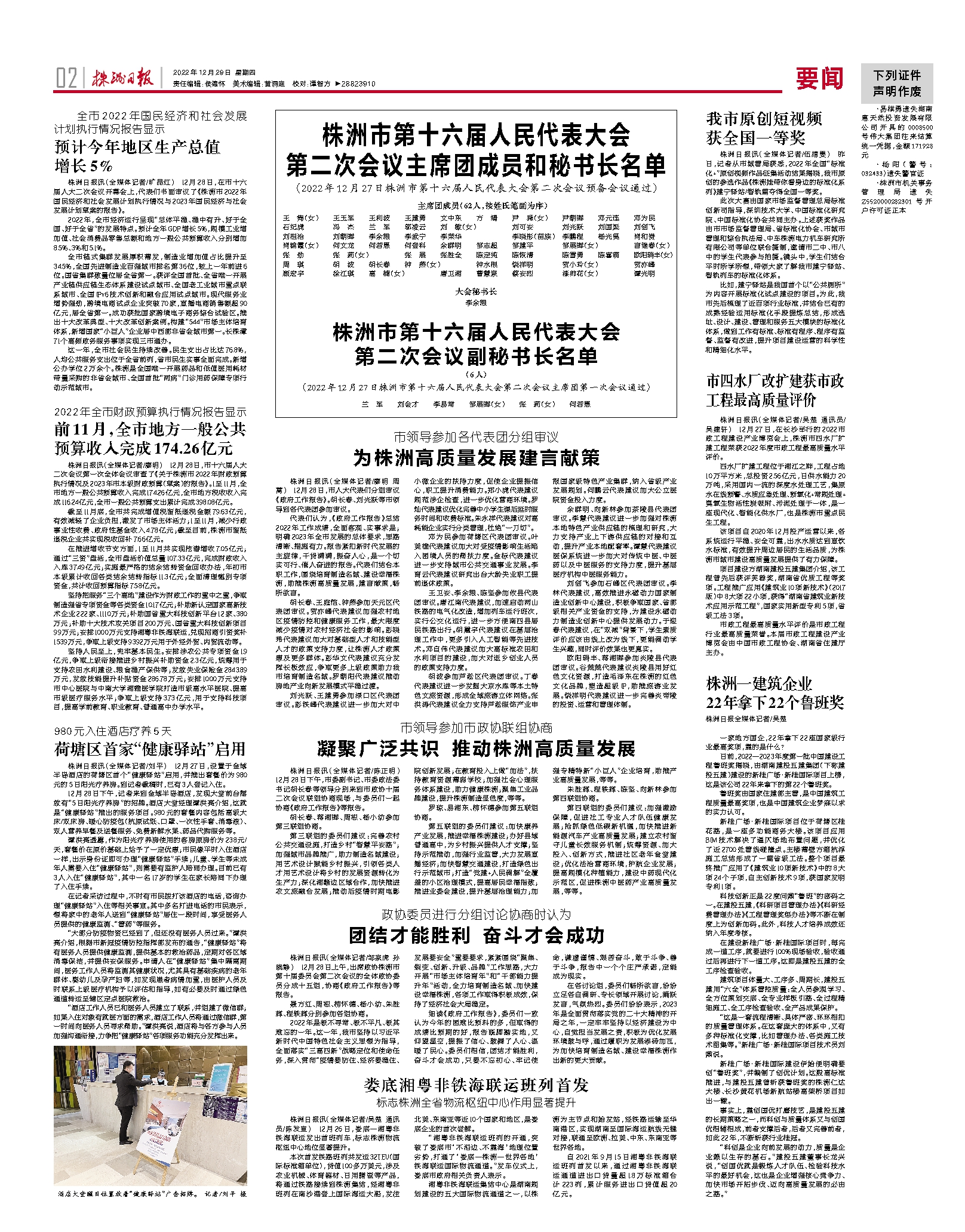 株洲市第十六届人民代表大会第二次会议主席团成员和秘书长名单