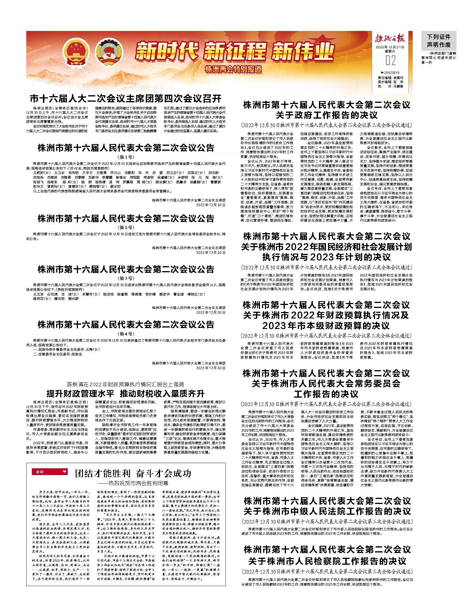 2022年12月31日《株洲日报》