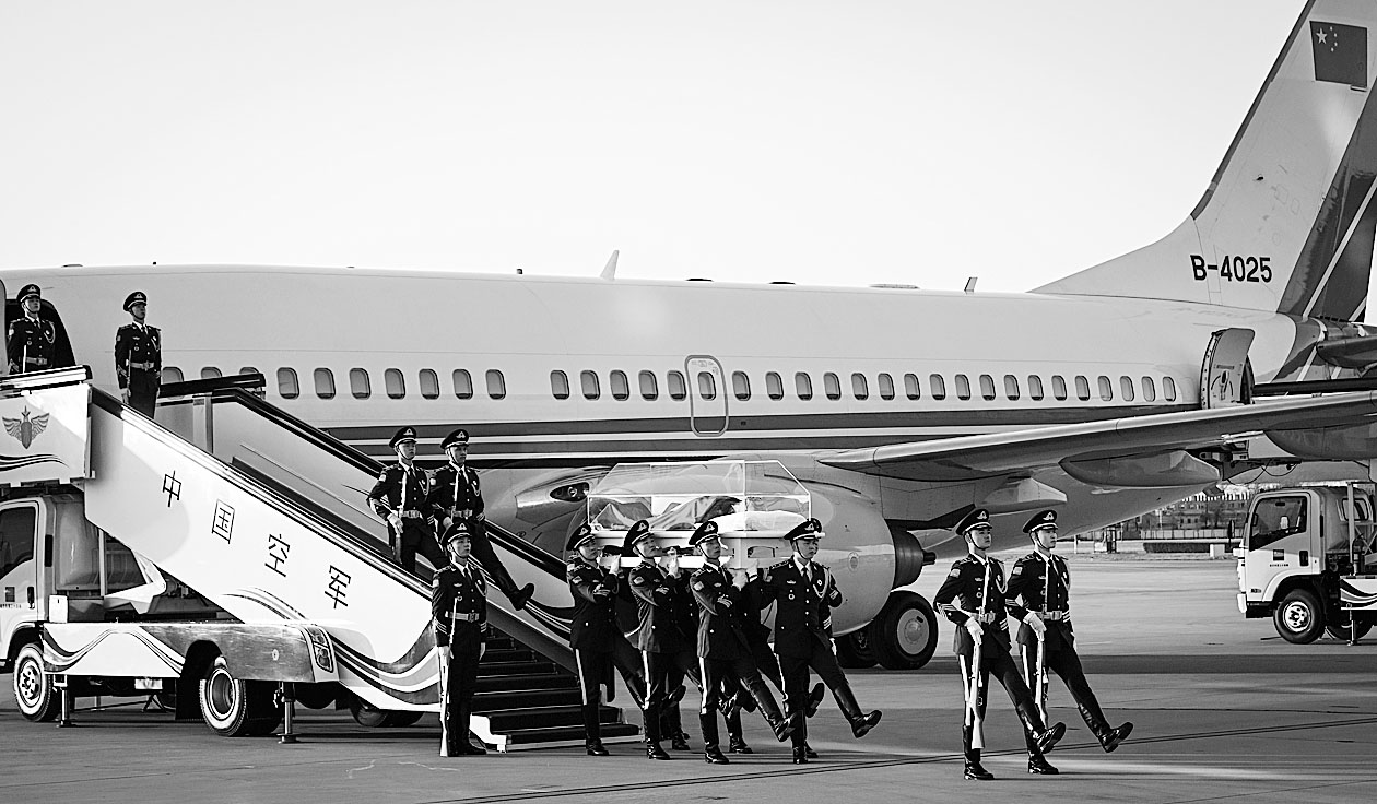 12月1日,江泽民同志的遗体从上海由专机敬移到达北京。 新华社记者/李学仁 摄