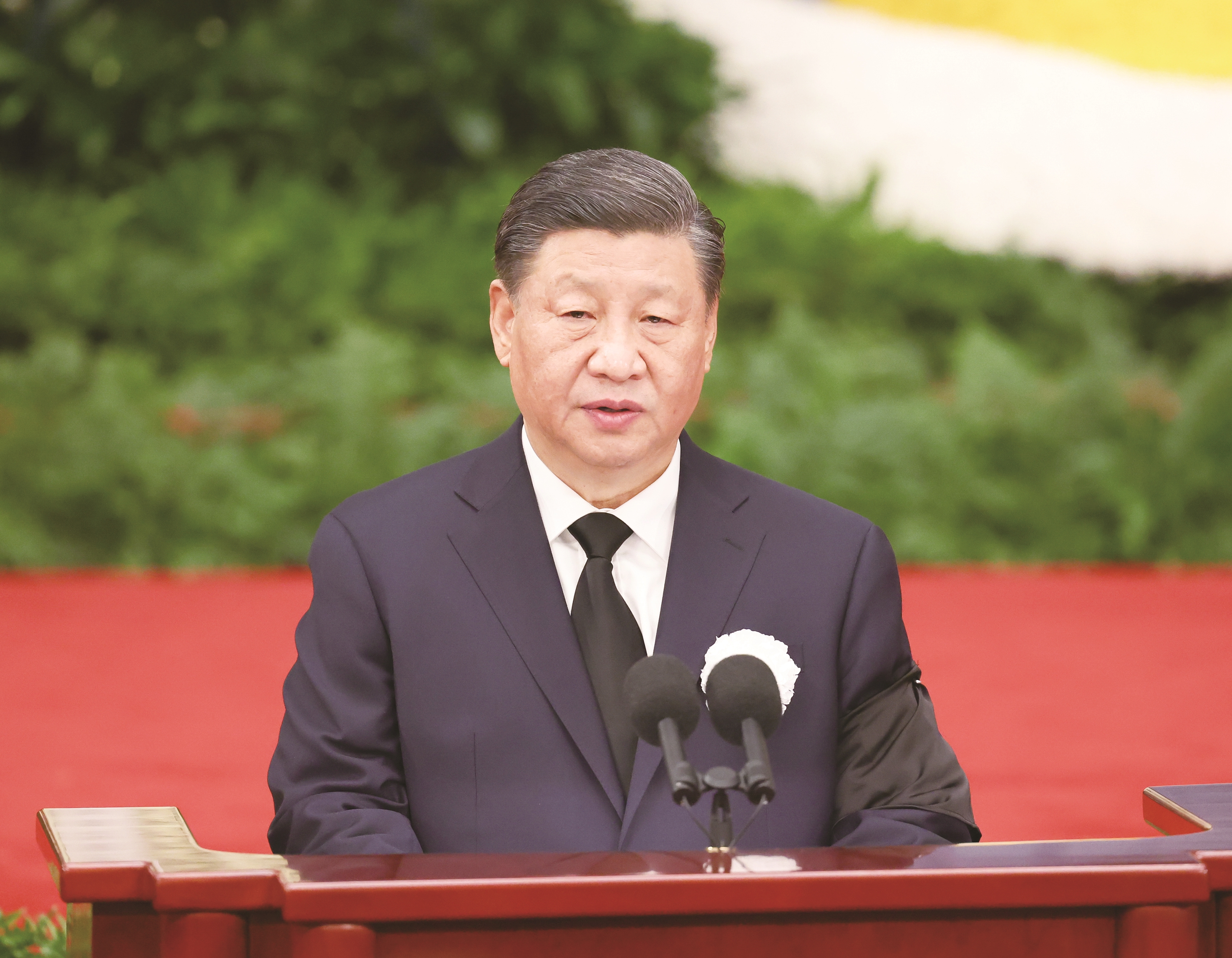 12月6日,中共中央、全国人大常委会、国务院、全国政协、中央军委在北京人民大会堂隆重举行江泽民同志追悼大会。中共中央总书记、国家主席、中央军委主席习近平在追悼大会上致悼词。 新华社记者 庞兴雷 摄