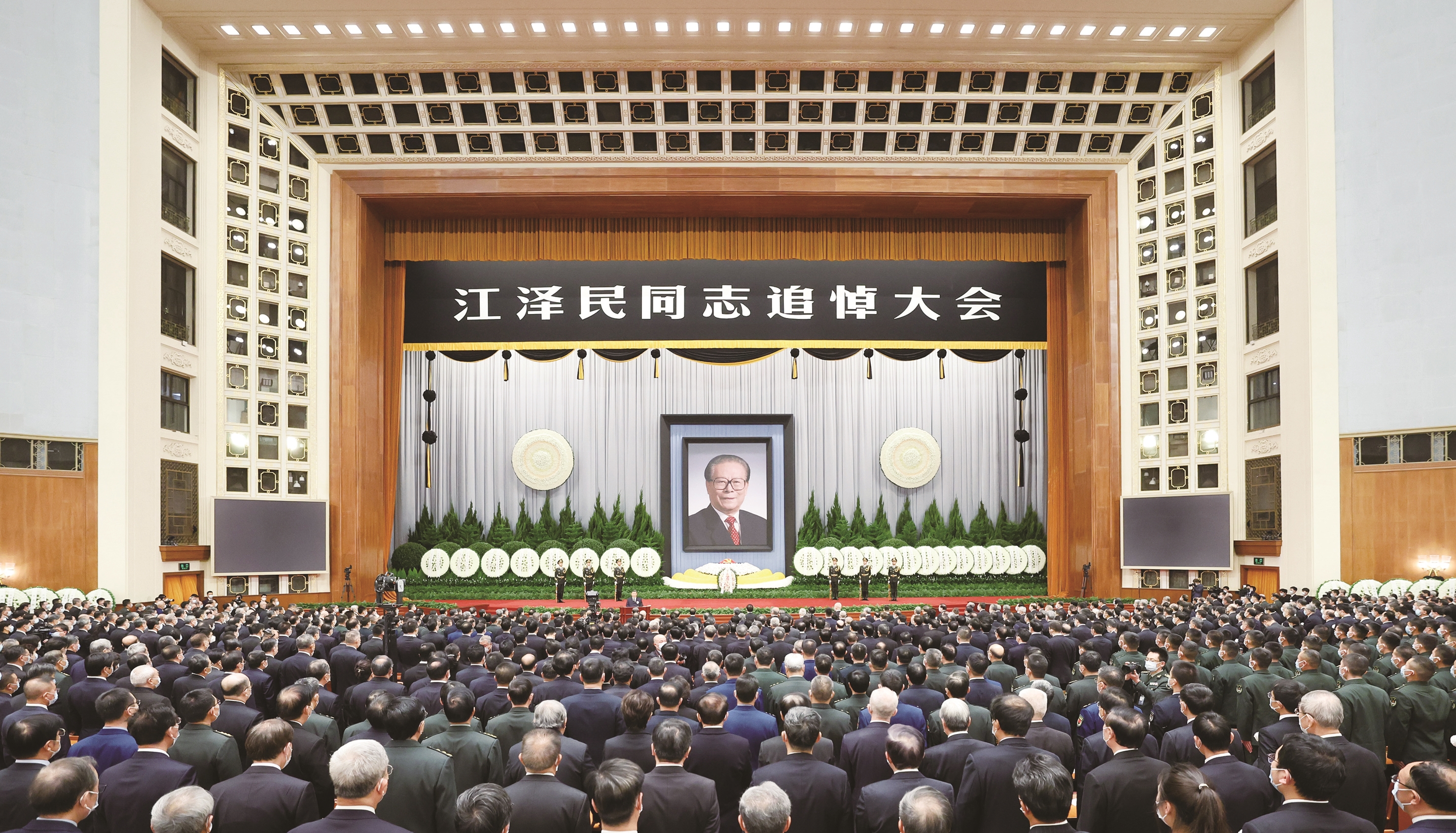 12月6日,中共中央、全国人大常委会、国务院、全国政协、中央军委在北京人民大会堂隆重举行江泽民同志追悼大会。 新华社记者 丁海涛 摄