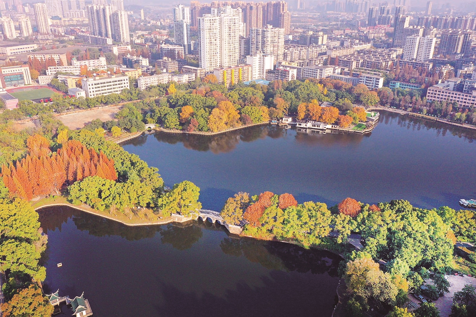 12月14日,神农公园层林尽染、五彩斑斓,美不胜收,宛如一幅绚丽的油画。