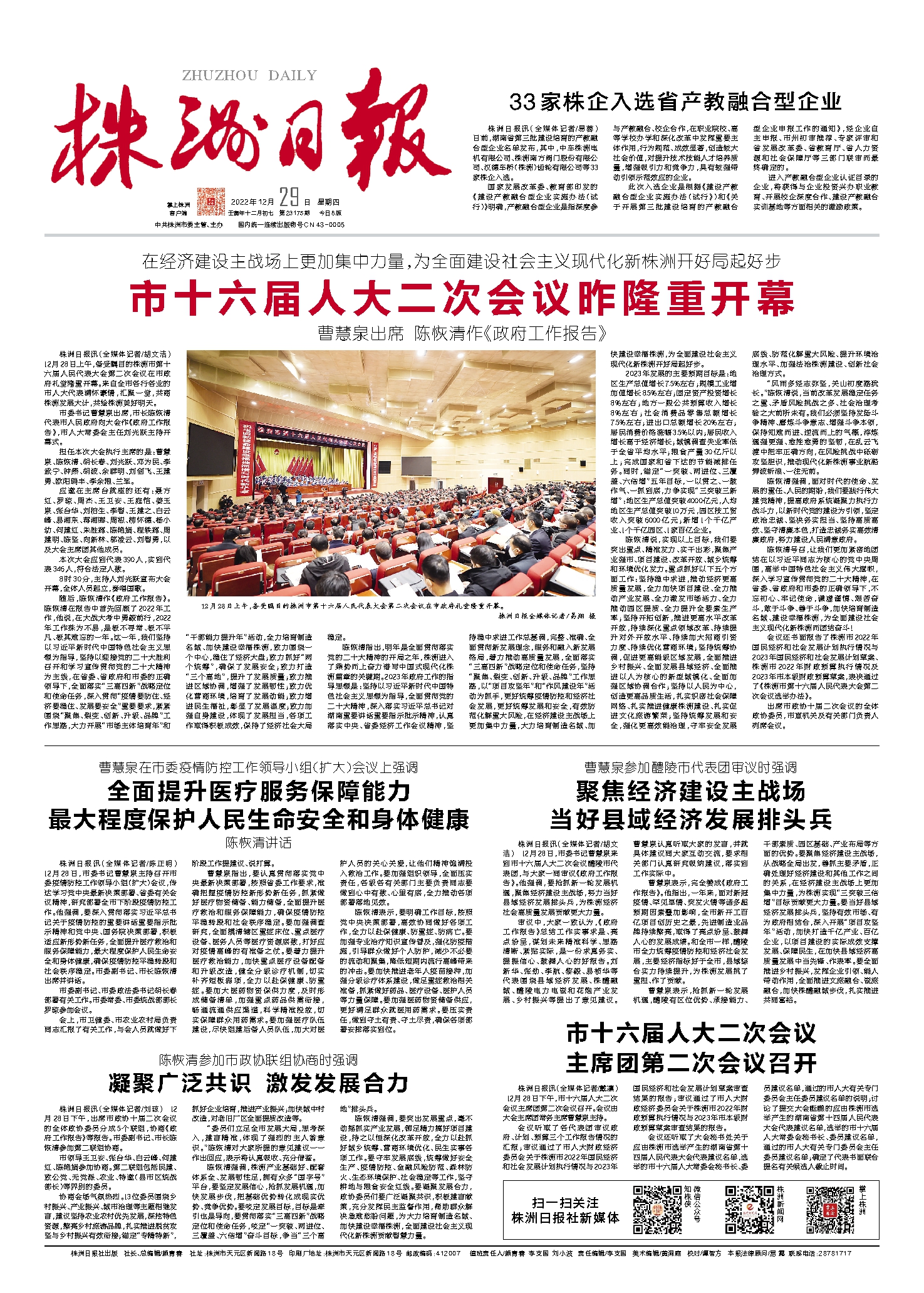 曹慧泉表示,完全赞成《政府工作报告》。他指出,一年来,面对新冠疫情、罕见旱情、突发火情等诸多超预期因素叠加影响,全市新开工百亿项目创历史之最,先进制造业品牌持续擦亮,取得了亮点纷呈、鼓舞人心的发展成绩。和全市一样,醴陵市全力统筹疫情防控和经济社会发展,主要经济指标好于全市,县域综合实力持续提升,为株洲发展挑了重担、作了贡献。