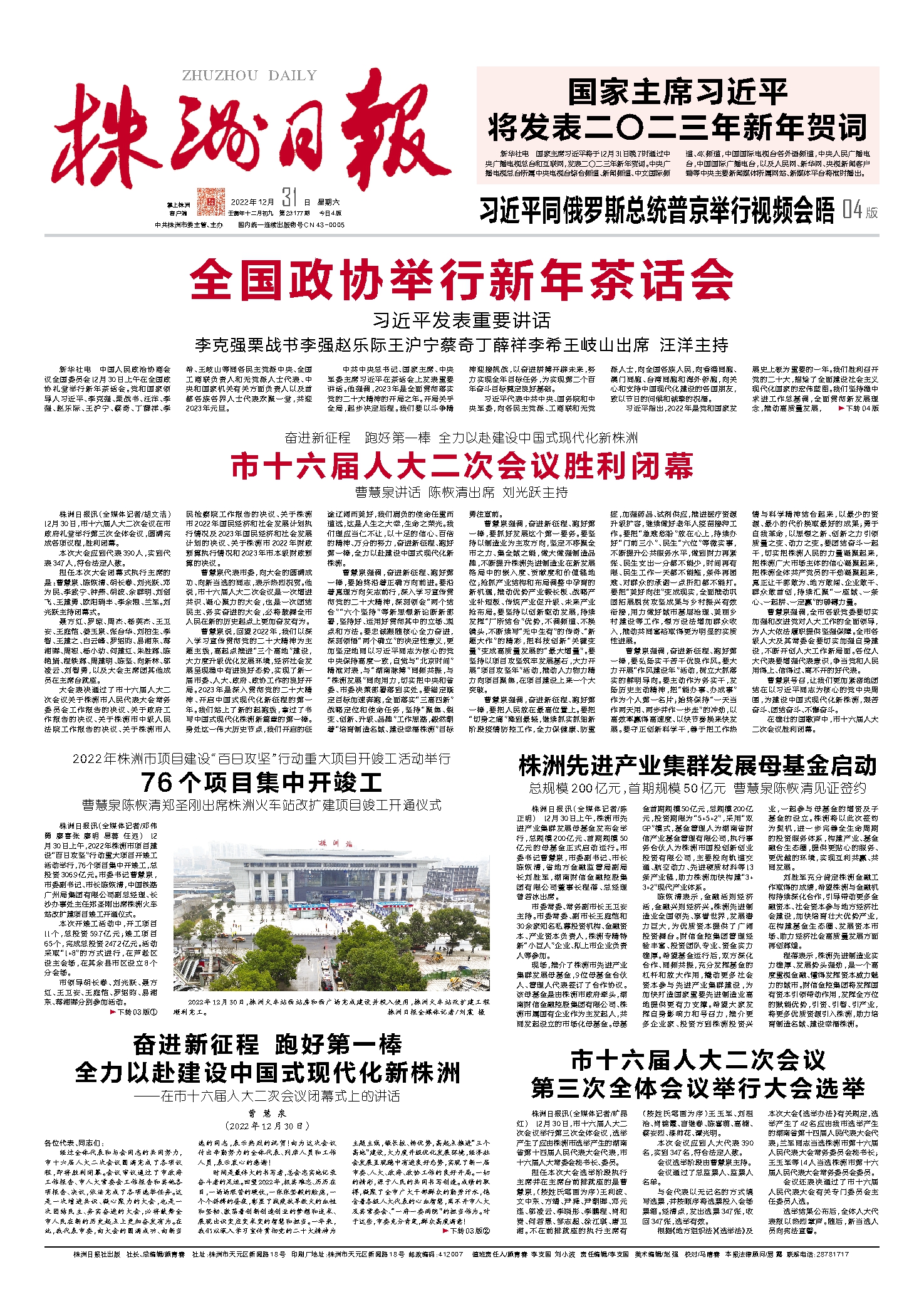 株洲日报讯(全媒体记者/旷昆红) 12月30日,市十六届人大二次会议举行第三次全体会议,选举产生了应由株洲市选举产生的湖南省第十四届人民代表大会代表,市十六届人大常委会秘书长、委员。