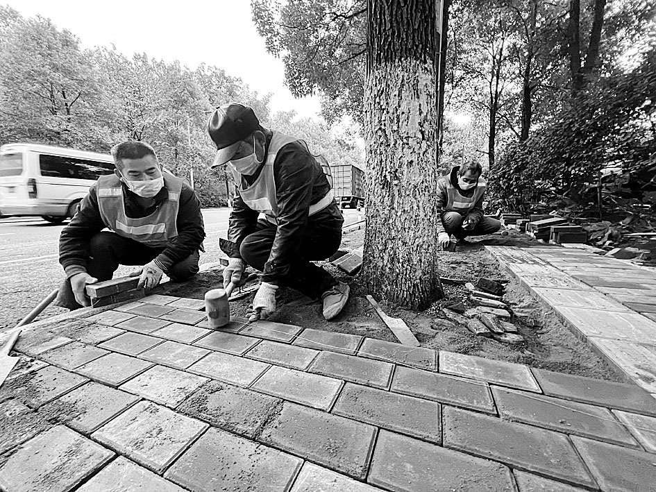 株洲日报讯(全媒体记者/伍靖雯 通讯员/欧阳潮) 11月30日,芦淞区枫溪大道,市城管局市政工程维护中心的养护队员们将崭新的人行道地砖一块块摊铺平整,让原本因坑洞破损的道路重新平坦起来。