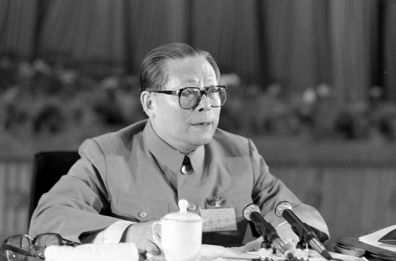 ▲1989年6月23日至24日,中国共产党第十三届中央委员会第四次全体会议在北京召开。这是江泽民同志在会上讲话。
