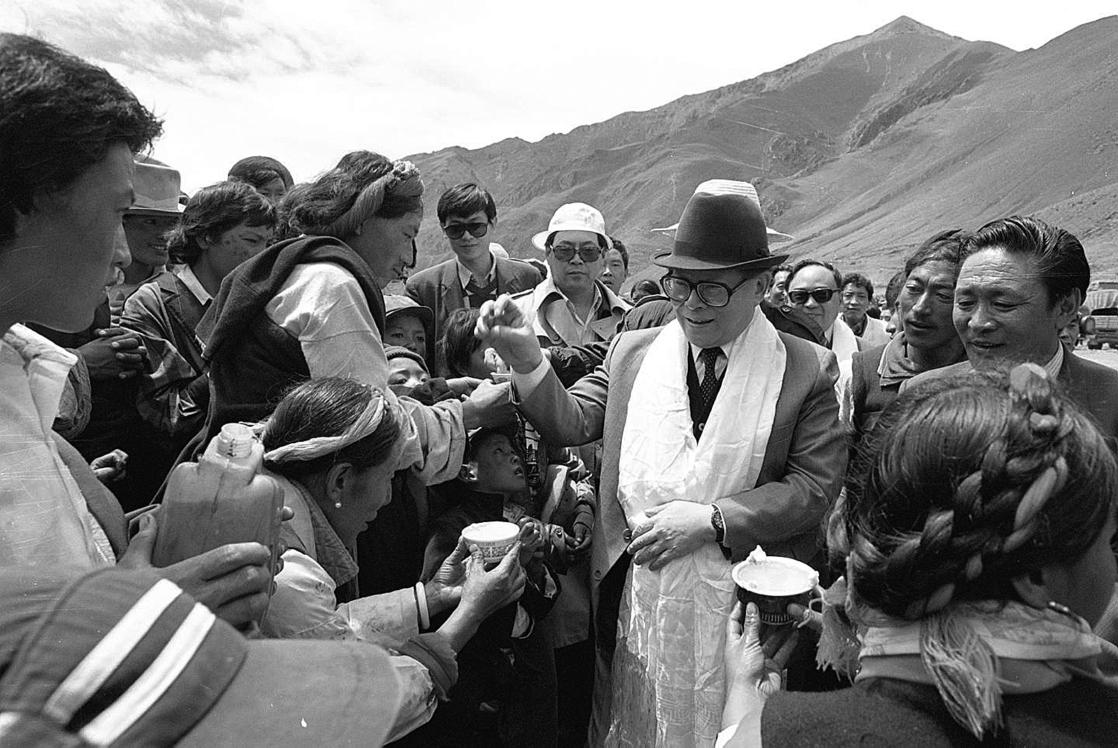 ▲1990年7月25日,江泽民同志与藏族群众共庆望果节。