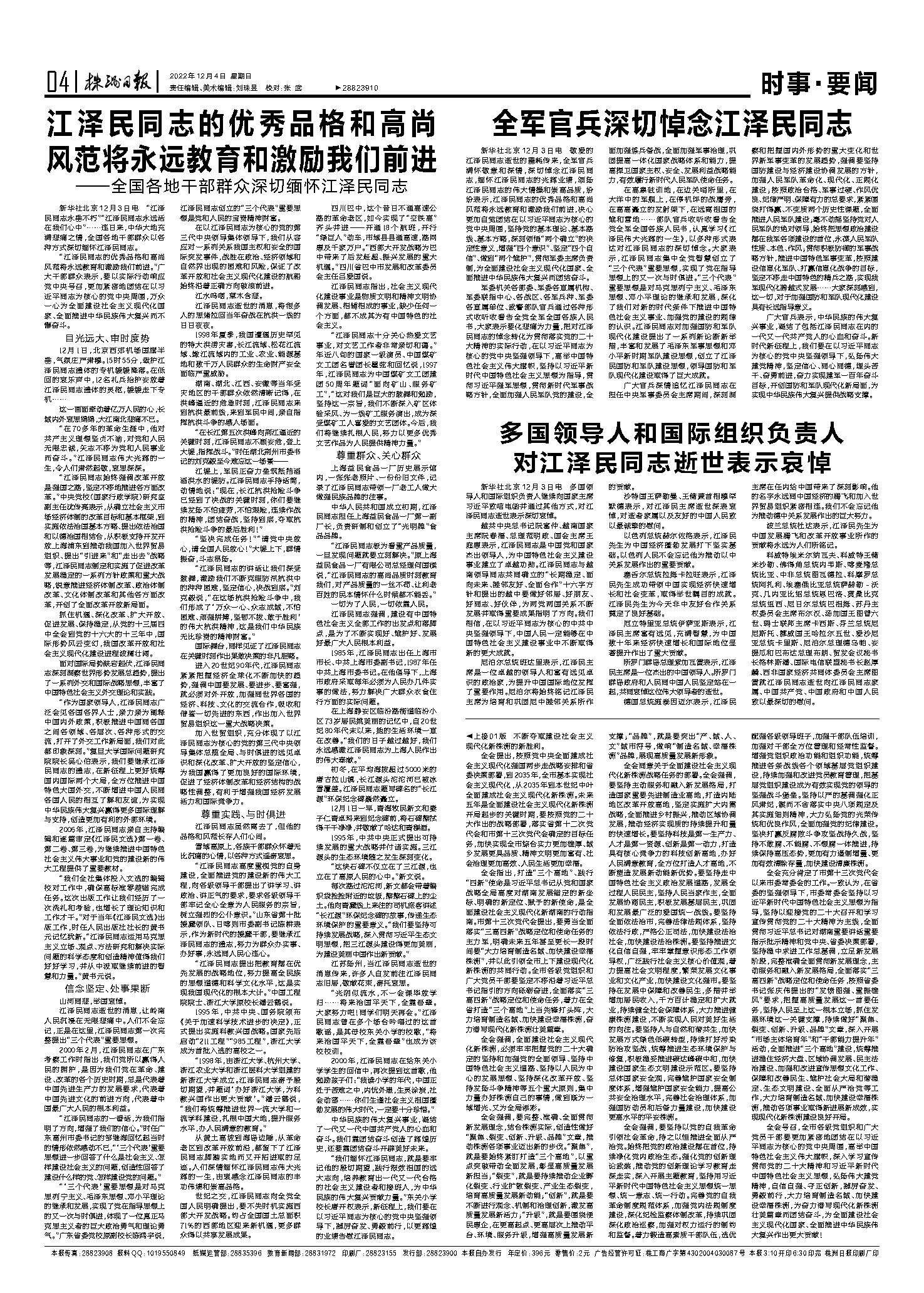 新华社北京12月3日电 多国领导人和国际组织负责人继续向国家主席习近平致唁电函并通过其他方式,对江泽民同志逝世表示深切哀悼。