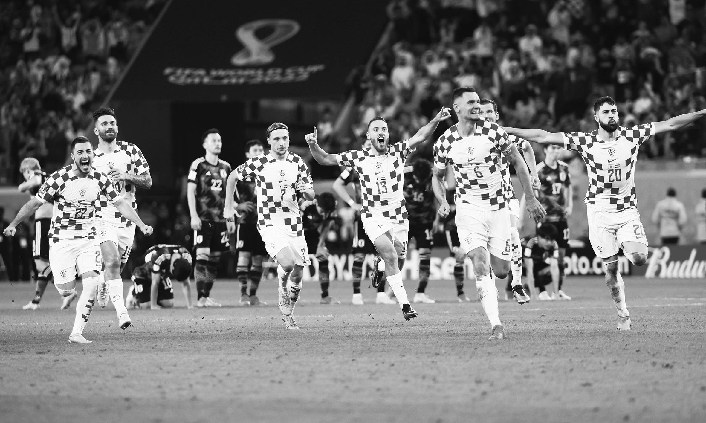 当日,在卡塔尔沃克拉贾努布球场进行的2022卡塔尔世界杯足球赛八分之一决赛中,克罗地亚队与日本队在常规时间和加时赛战成1比1平,通过点球大战克罗地亚队以总比分4比2获胜。 新华社记者 兰红光 摄
